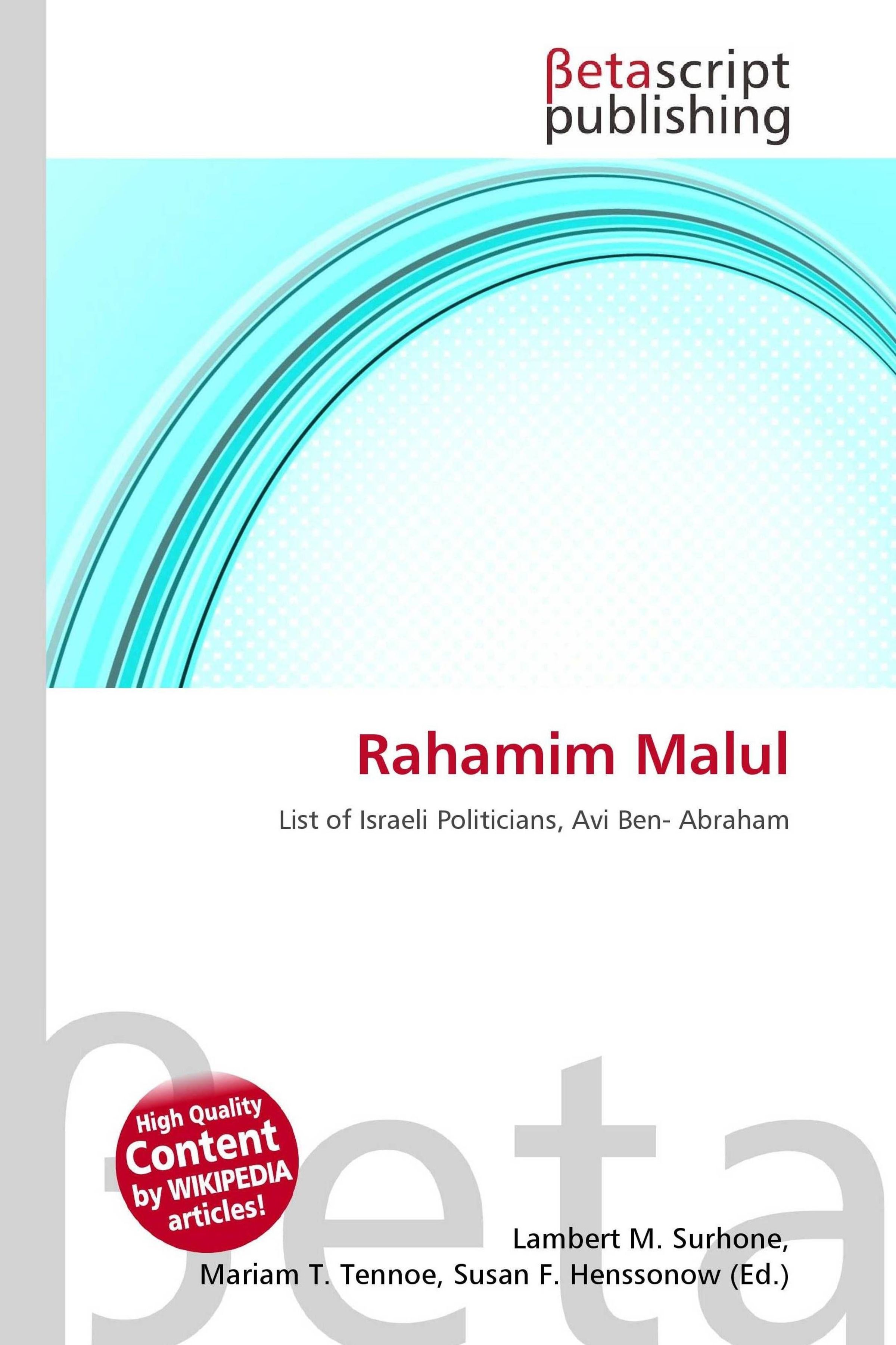 "Rahamim Malul", "List of Israeli Politicians, Avi Ben-Abraham." Logo: "Betascript Publishing". Hintergrund: Kreise in Blau., Buch