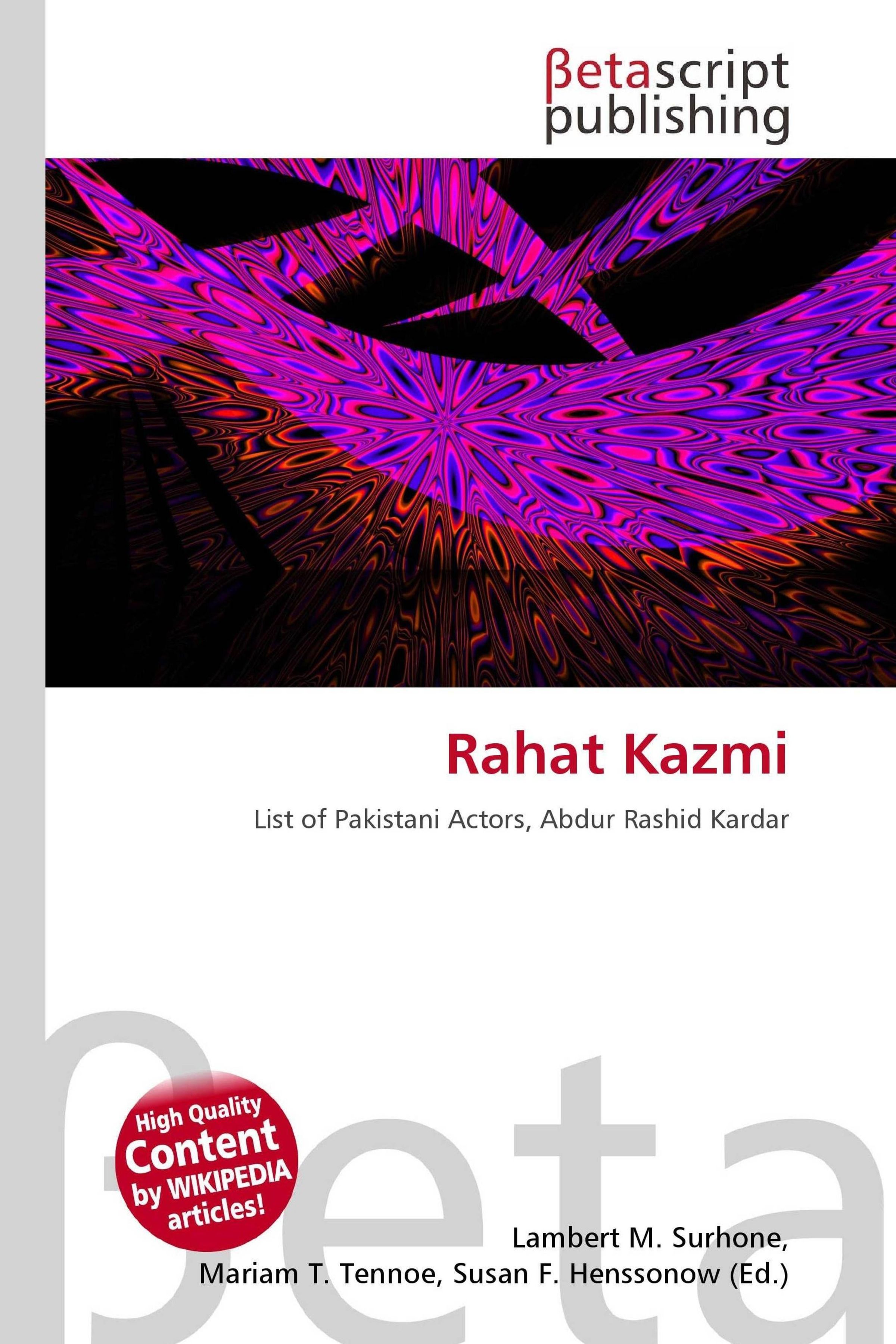 Please note that the content of this book primarily consists of articles available from Wikipedia or other free sources online. Rahat Kazmi (born 1946) is a famous Pakistani television actor, a talk-show anchor, a professional speaker and an academician. He is married to renowned Pakistani actress, producer and director Saira Kazmi, with whom he fell in love when he started his acting career. He has two children from Saira, Ali Kazmi and Nida Kazmi. Both of the children are associated with the show business industry of Pakistan. Rahat joined the prestigious Pakistani Civil Services in 1968 as an Information Officer. In 1976 he resigned from his job and pursued acting.