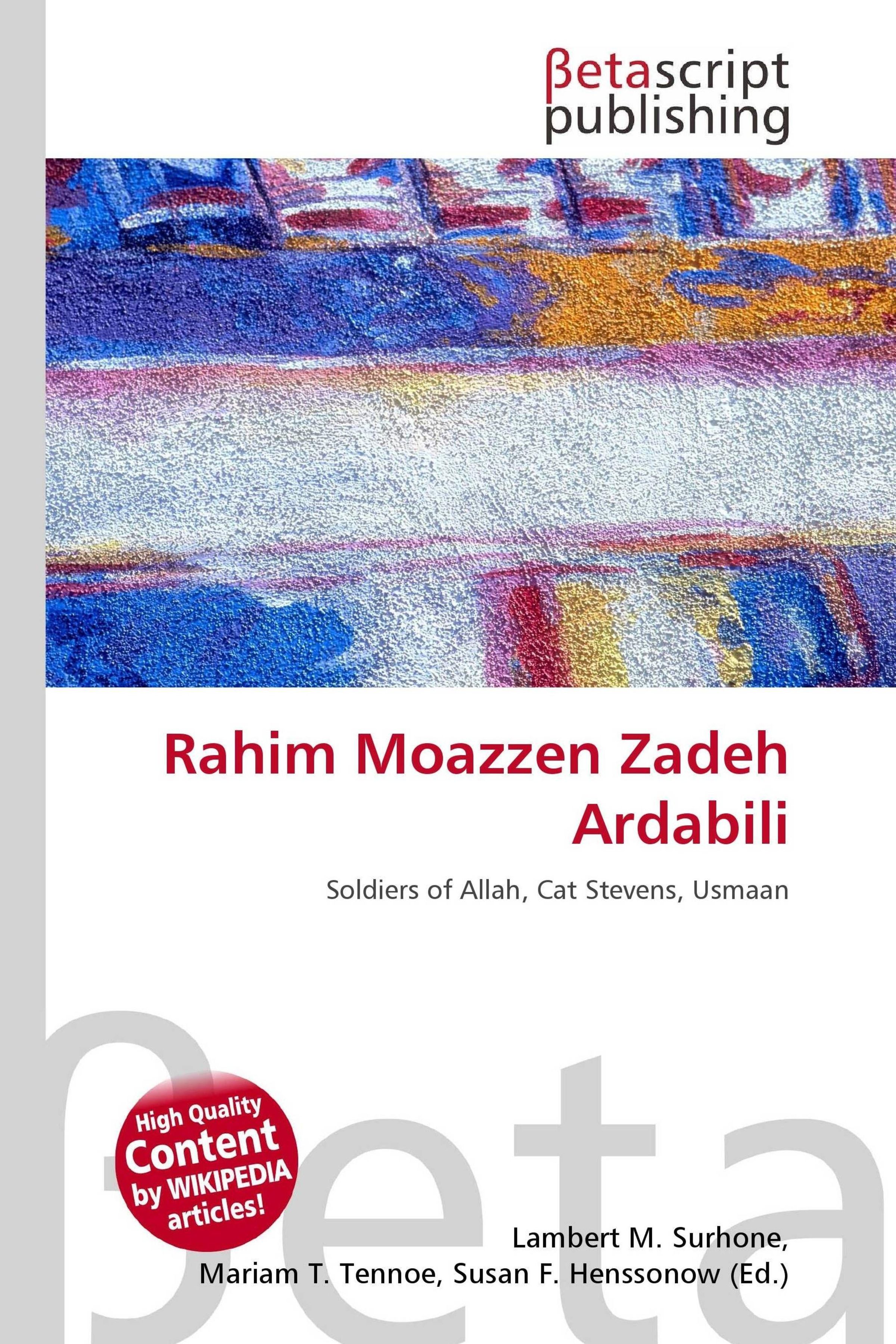Please note that the content of this book primarily consists of articles available from Wikipedia or other free sources online. Rahim Moazzen Zadeh Ardabili (1925 - 25 May 2005) was a prominent Shia Moazzen in Iran. He was born in Ardabil Province in a very religious family. His father Abdul Karim Moazzen Zadeh Ardabili was himself the first Moazzen to call azaan on radio and when he died Rahim replaced his father. His famous azaan which he recited in 1955 in 15 Khordad square in Tehran can still be heard from radio and television.