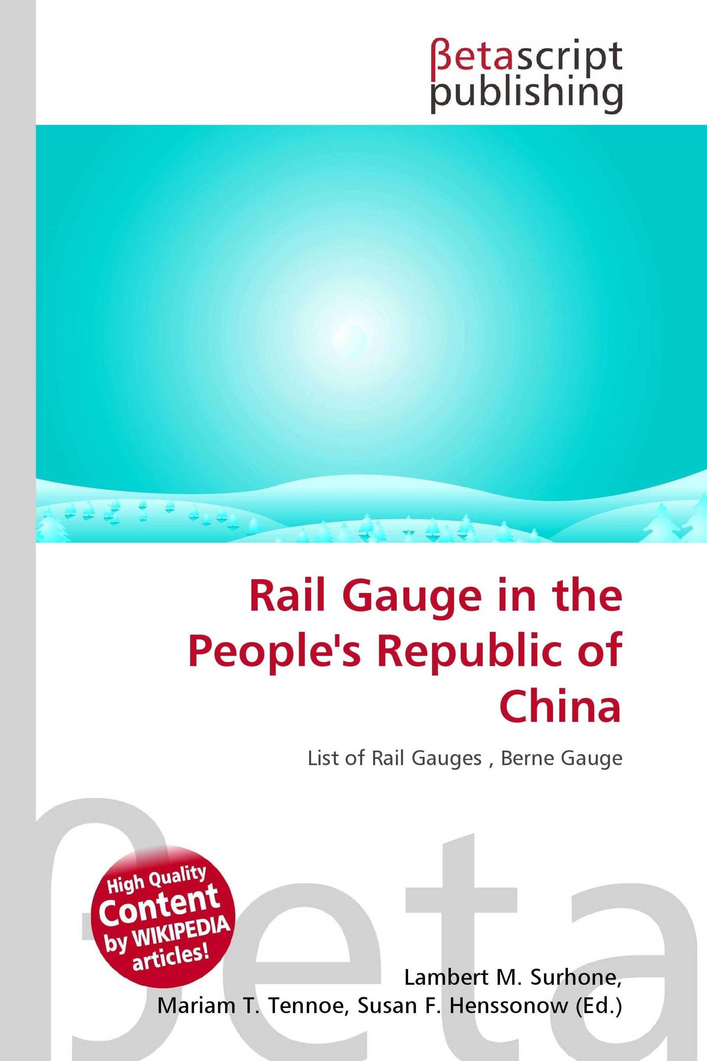 Please note that the content of this book primarily consists of articles available from Wikipedia or other free sources online. Most of the railway network of the People's Republic of China is standard gauge. The standard gauge (also named the Stephenson gauge after George Stephenson, or Normal gauge) is a widely-used rail gauge. Approximately 60% of the world's existing railway lines are built to this gauge (see the list of countries that use the standard gauge). The distance between the inside edges of the rails of standard gauge track is 1, 435 mm (4 ft 8+12 in).
