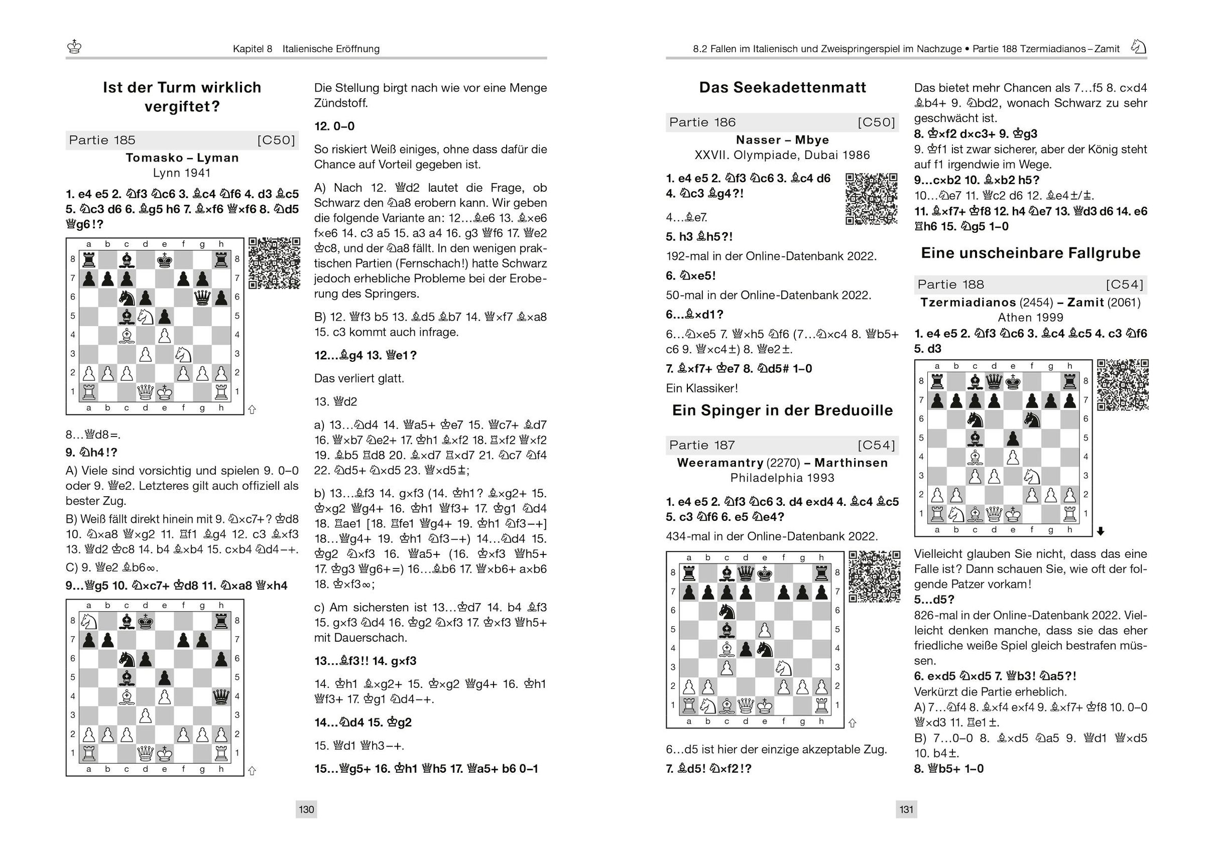 Und noch zwei ganz dicke Pluspunkte hat dieses wirklich unterhaltsame Lehrbuch: Als willkommener Nebeneffekt wird nämlich einerseits das eigene Kombinationsvermögen garantiert erheblich wachsen, und andererseits kann man systematisch sein Eröffnungsrepertoire erweitern, um dann selbst listig Fallen zu stellen. So wie es Meister Frank Marshall liebte. Der Amerikaner ist quasi als ¿König der Fallensteller¿ in die Schachgeschichte eingegangen, weil er bereits vom allerersten Zug an zu einem geistreichen Fallenspielbereit war ¿
