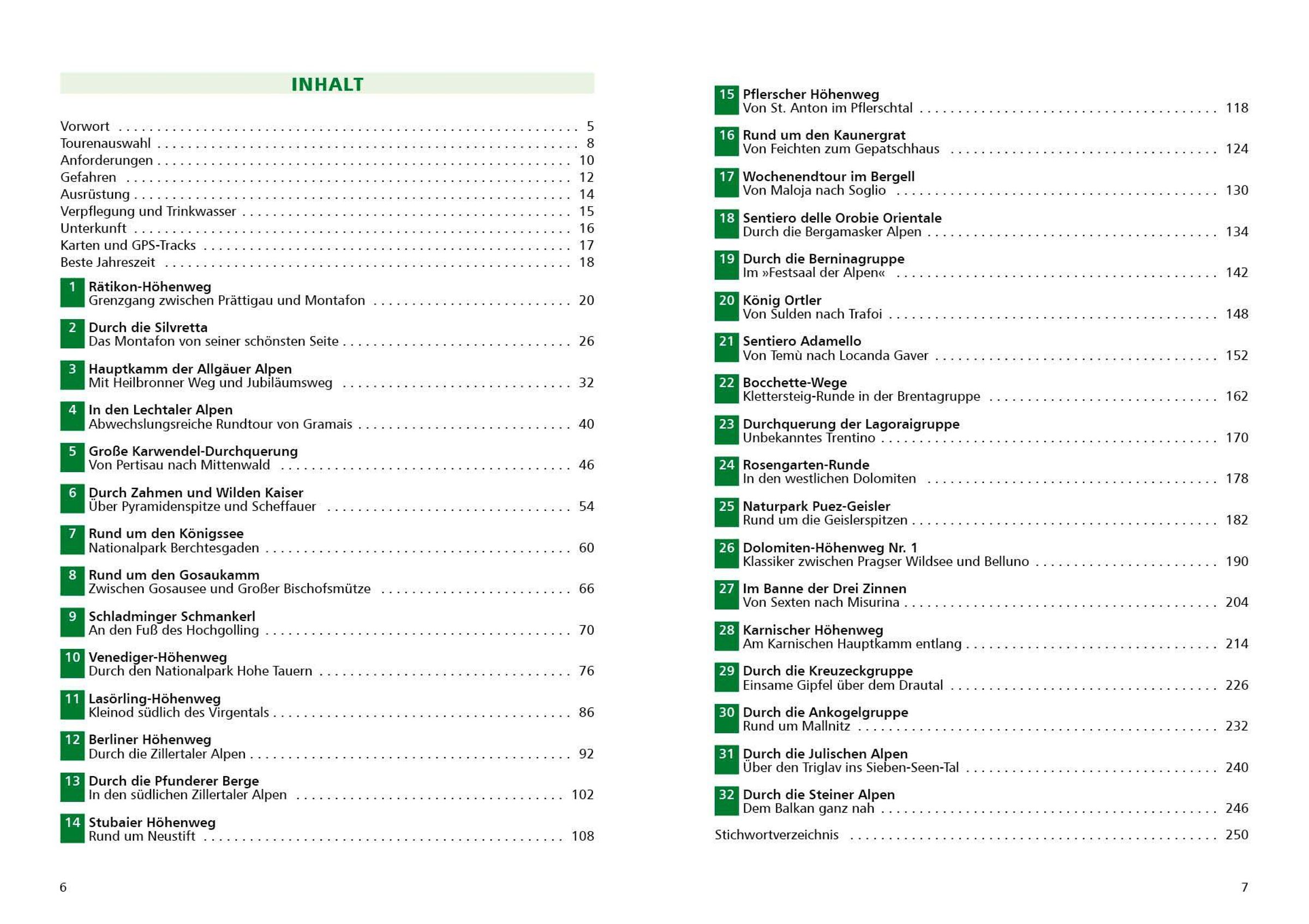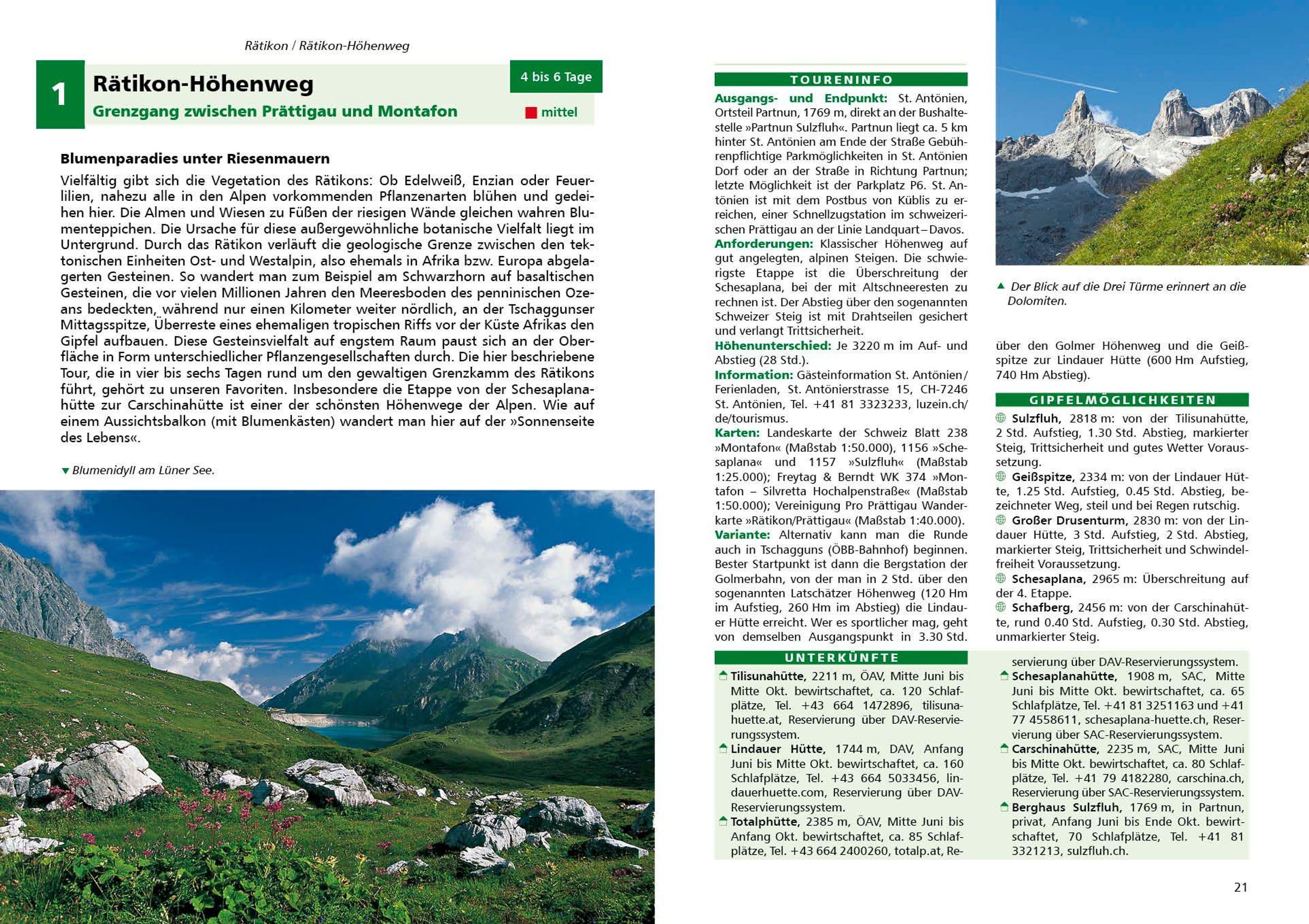Enthalten sind bekannte Klassiker wie der Venediger-Höhenweg , der Berliner Höhenweg oder der Dolomiten-Höhenweg Nr. 1 . Ergänzt werden sie durch ruhigere, weniger begangene Mehrtagestouren, etwa in den Bergamasker Alpen oder in der Lagoraigruppe - ideal für alle, die beim Wandern Einsamkeit und Ursprünglichkeit suchen.