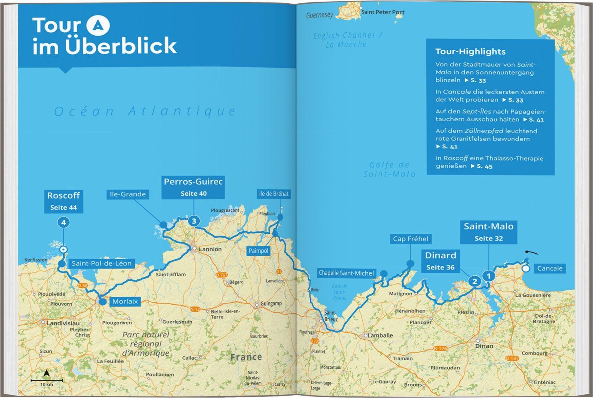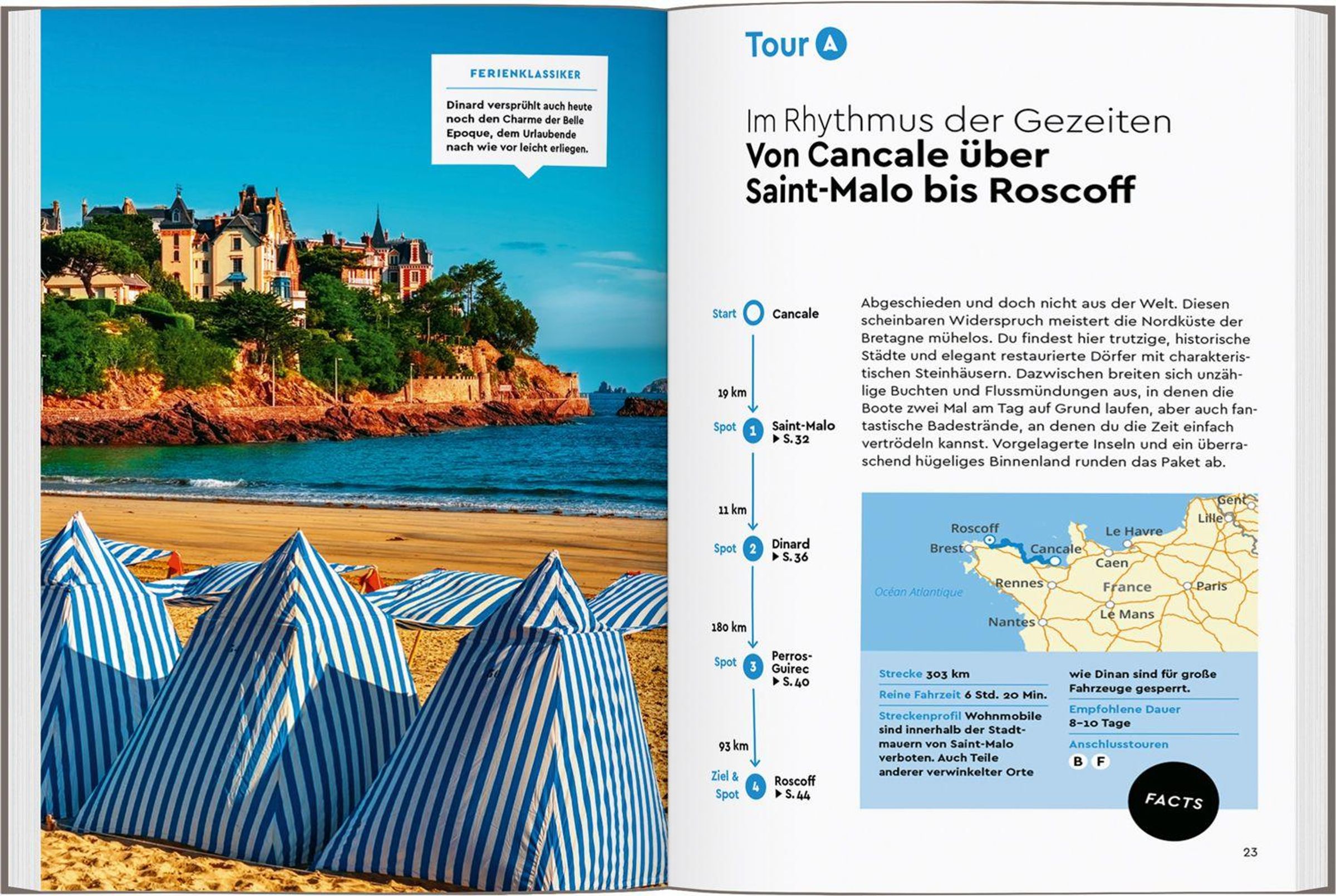 An den Küsten der Normandie und der Bretagne wird es nie langweilig: Mal zeigt sich die Landschaft lieblich wie an der Côte de Granit Rose, mal ruppig und wild wie auf der Crozon-Halbinsel, mal atemberaubend wie an den Klippen bei Étretat. Egal, ob du mit dem Strandsegler auf den weiten Stränden im Norden cruist oder den Mont-Saint-Michel, Rouen oder Rennes erkundest - mit MARCO POLO stellst du dir genau die Bretagne & Normandie-Route zusammen, die dir gefällt!