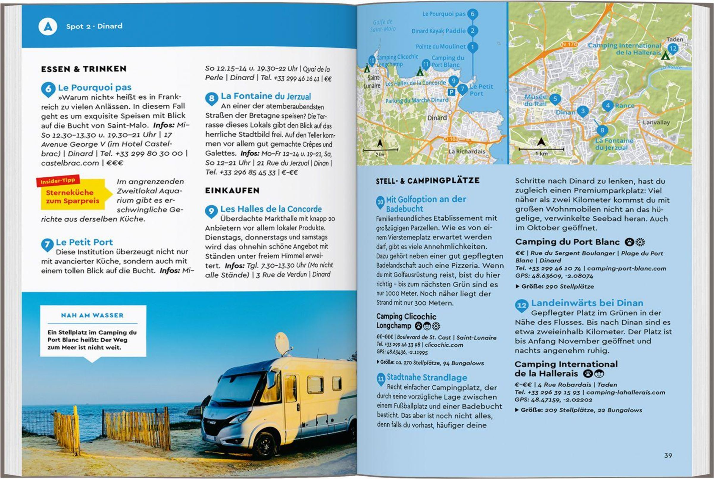 Die besten Stellplätze sowie Campingplätze vor Ort - mit Kind, mit Hund, in bester Lage und für jeden Geldbeutel von kostenlos bis luxuriös, alle mit GPS-Koordinaten