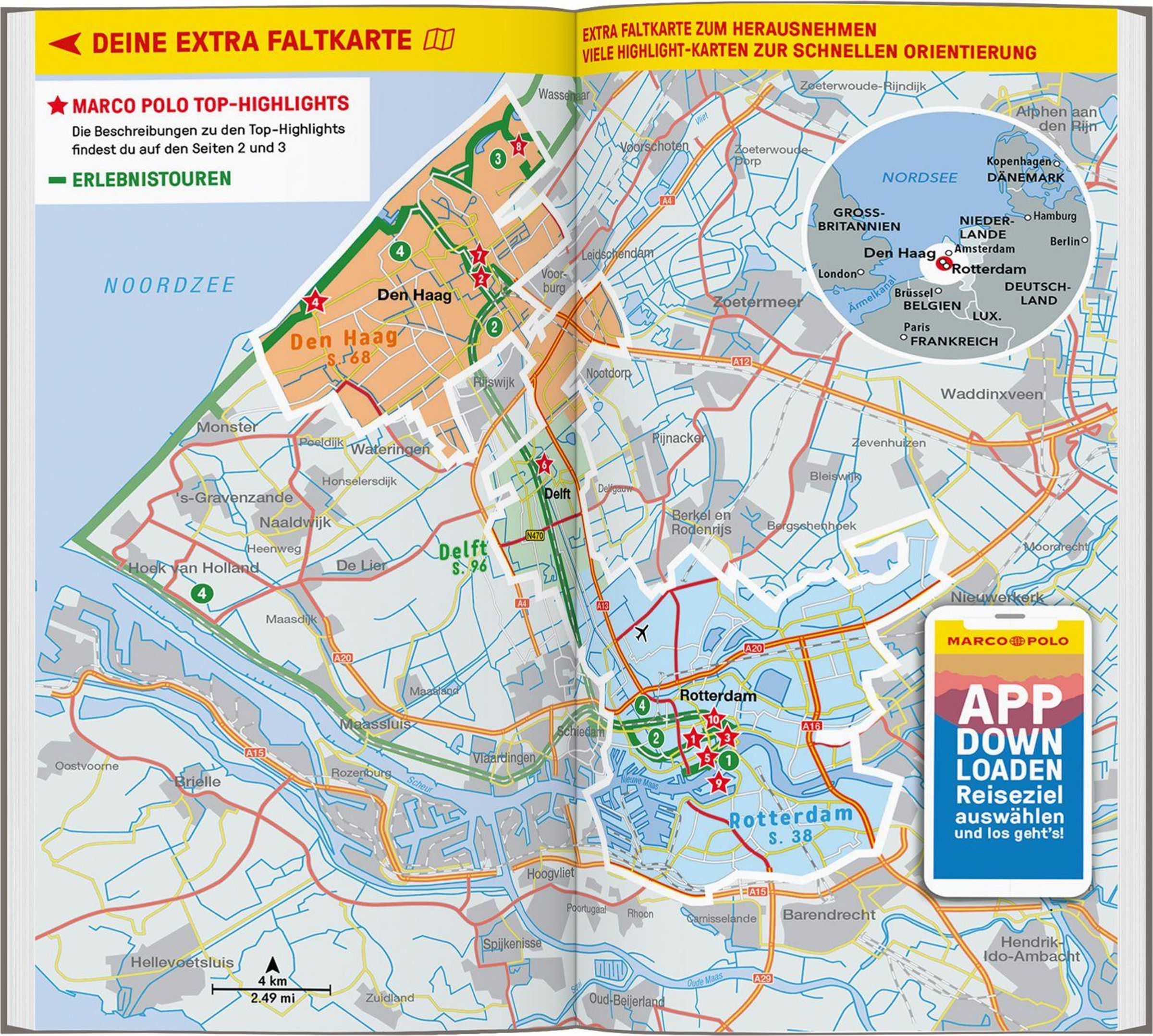 Hier sind die Wege kurz: Die Städte in Süd- und Nordholland mit ihrer avantgardistischen Architektur, weltberühmten Kunstwerken und stilvollen Märkten lassen sich wunderbar nacheinander erkunden. Mit den Insider-Tipps im MARCO POLO Reiseführer verpasst du nichts in der quirligen und visionären Hafenstadt Rotterdam, der charmanten Kunst- und Residenzstadt Den Haag und dem zauberhaften Städtchen Delft dazwischen.