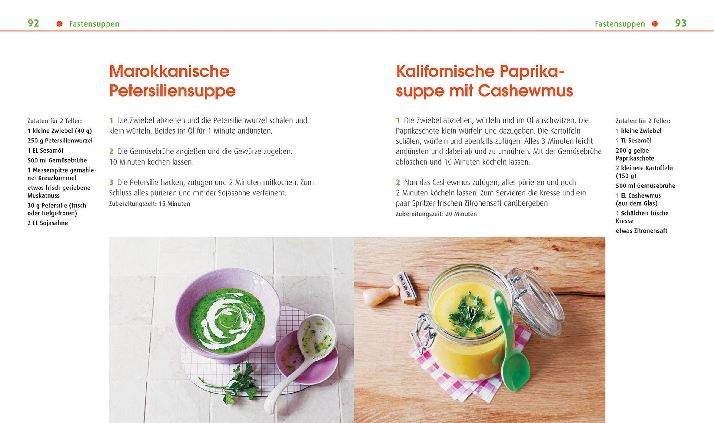 Die Suppen-Fastenmethode von Ralf Moll ist so schonend und angenehm, dass man die Alltagspflichten in Beruf und Familie sehr gut bewältigen kann. Die Rezepte lassen sich schnell und leicht zubereiten und sorgen für eine gleichmäßige Basenzufuhr, so erlebt man durch das Fasten mit leckeren Suppen auch während der Arbeitszeit einen Energiekick. Gleichzeitig verbessern sich die Blutwerte und viele kleine Zipperleins wie Konzentrationsschwäche, Müdigkeit, Sodbrennen und Leistungsabfall verschwinden.