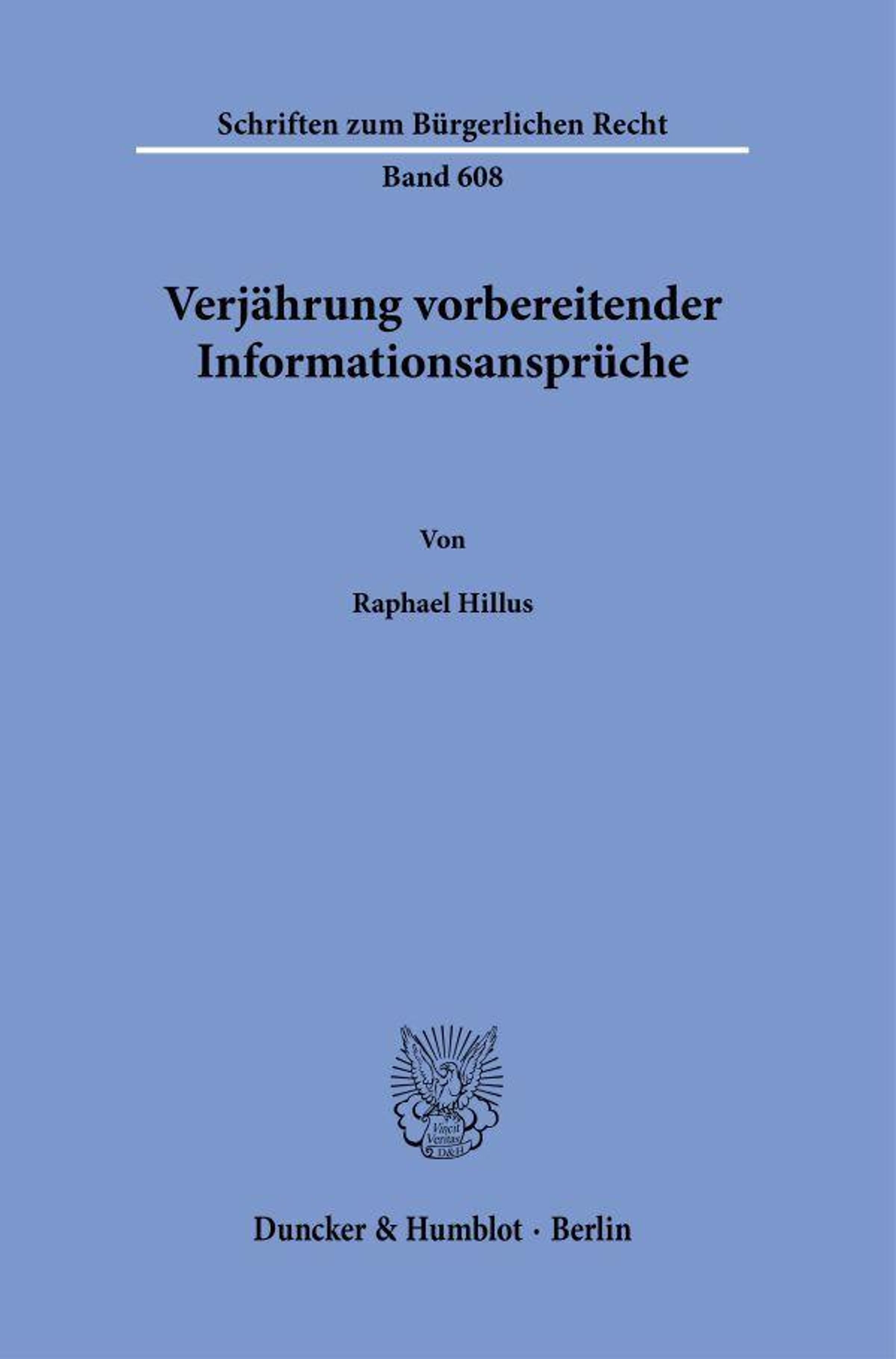Zahlreiche Informationsansprüche im Zivilrecht dienen der Durchsetzung eines Hauptanspruchs und sind zugleich eigenständige, der Verjährung unterliegende Ansprüche. Dies kann dazu führen, dass der Informationsanspruch vor dem Hauptanspruch verjährt - mit der Folge, dass der Hauptanspruch faktisch nicht mehr durchsetzbar ist. Umgekehrt kann der Informationsanspruch aber auch erst nach dem Hauptanspruch verjähren, sodass er ins Leere läuft, weil der vorzubereitende Hauptanspruch bereits verjährt ist. Die Arbeit untersucht systematisch, wann ein solches Auseinanderfallen der Verjährung eintritt und zu unbilligen Ergebnissen führt. Sie zeigt, dass sich billige Ergebnisse im geltenden Recht dann nicht erreichen lassen, wenn der Informationsanspruch vor dem Hauptanspruch verjährt und dies auf einem späteren Verjährungsbeginn des Hauptanspruchs beruht. Insoweit besteht gesetzgeberischer Handlungsbedarf. Vorgeschlagen wird eine Sonderverjährungsfrist für vorbereitende Informationsansprüche.