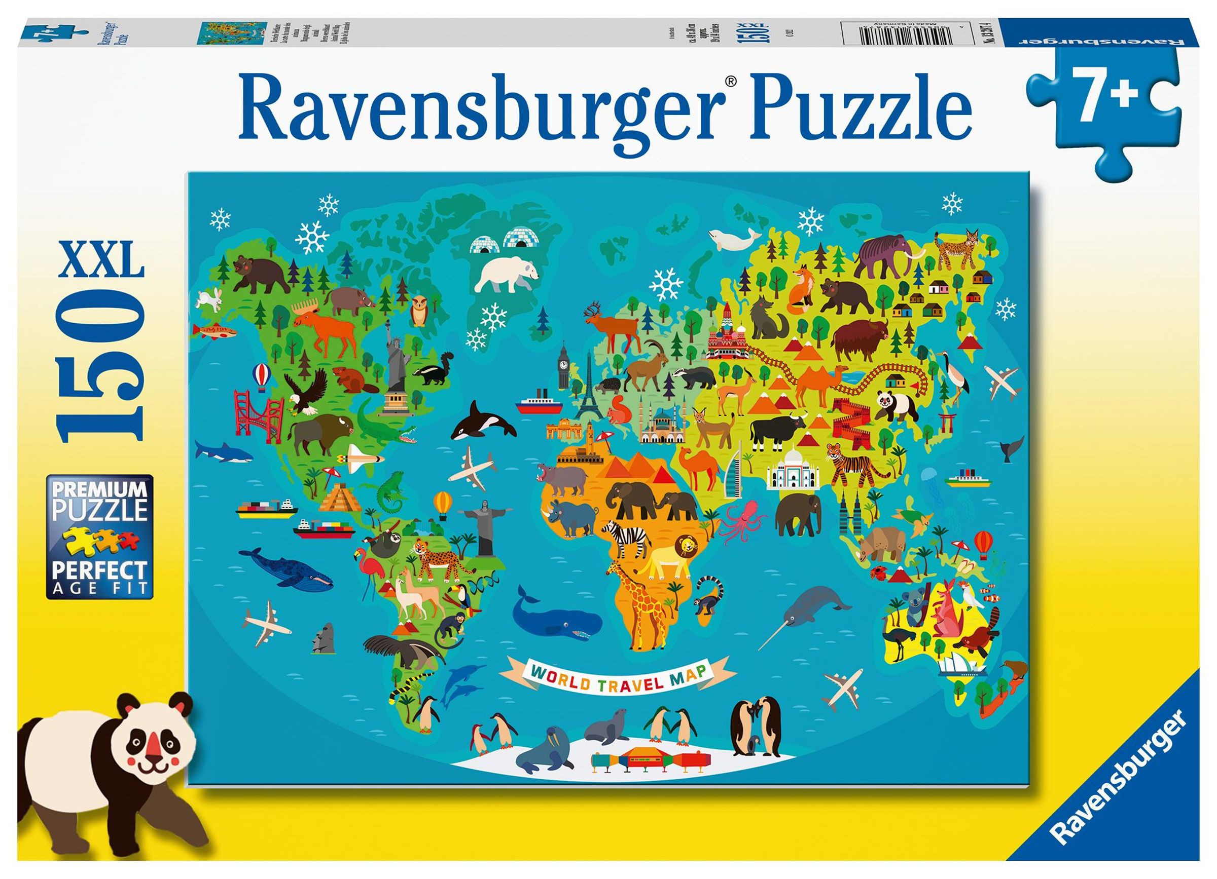 Ravensburger Kinderpuzzle - Tierische Weltkarte - 150 Teile Puzzle für Kinder ab 7 Jahren