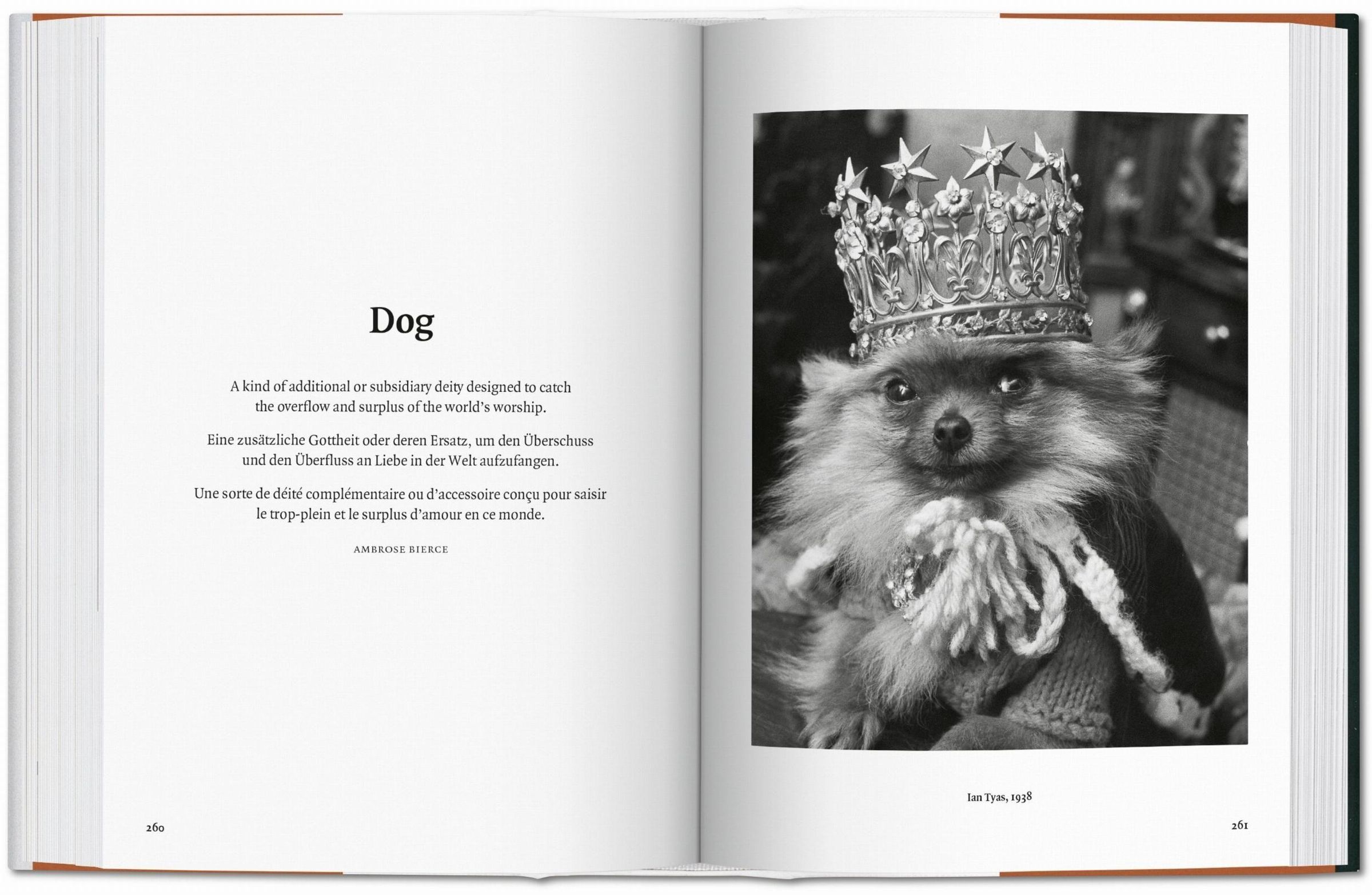 Zu Ehren des beliebtesten Tieres der Welt und "des alleinigen wahren Gefährten und treuesten Freundes des Menschen" (Arthur Schopenhauer) zeigen wir in diesem Album über 400 Hundefotografien aus der Zeit vom 19. Jahrhundert bis in die Gegenwart. Darunter Werke von Man Ray, Eric Fischl, Wolfgang Tillmans, Ralph Gibson, Fatima NeJame, Vincent Versace und natürlich von den Doyens der Hundefotografie, vom einzigartigen Elliott Erwitt und von William Wegman , dessen Weimaraner-Hund "Man Ray" 1982 von der Village Voice zum "Mann des Jahres" gekürt wurde.
