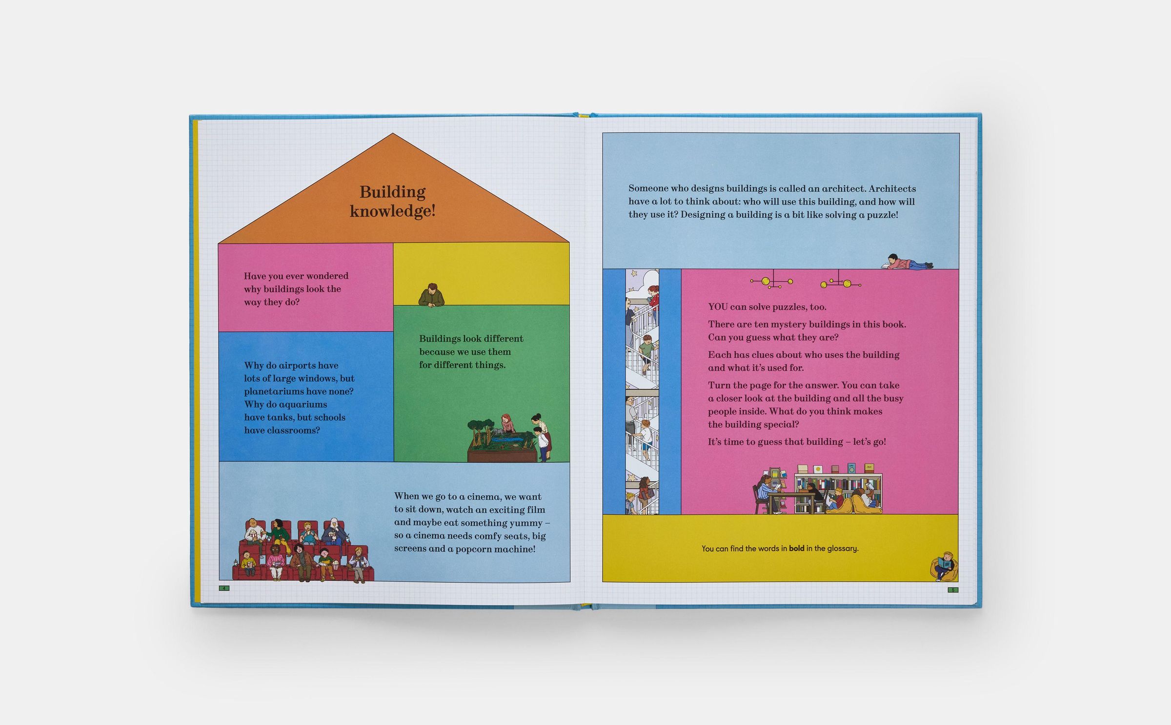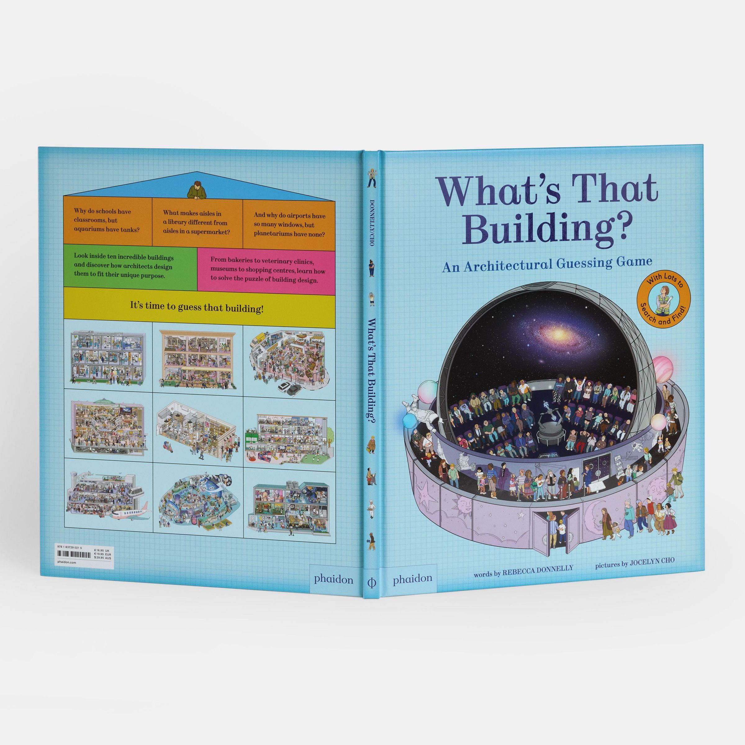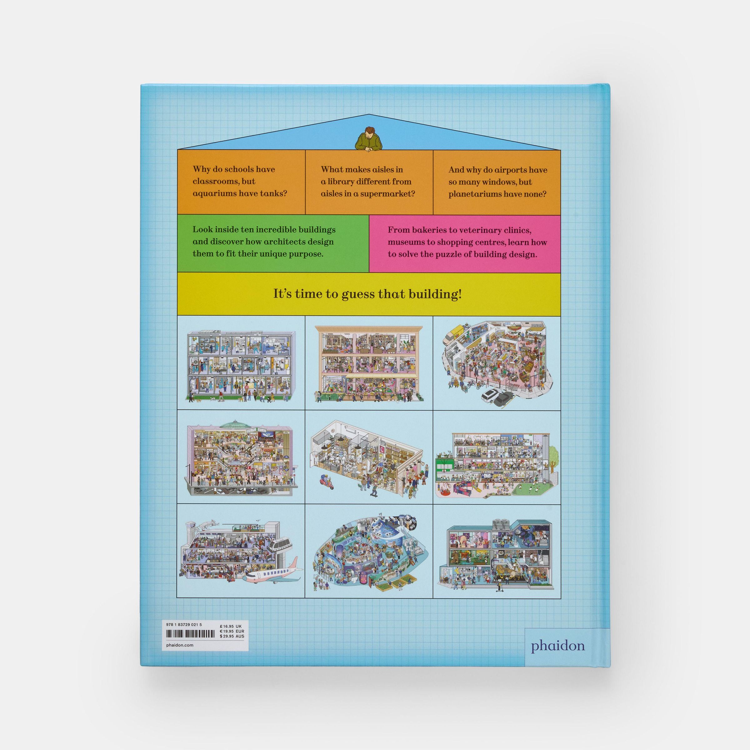 A playful introduction to design and architecture with cutaway scenes of ten buildings, featuring an interactive guessing game and search-and-find