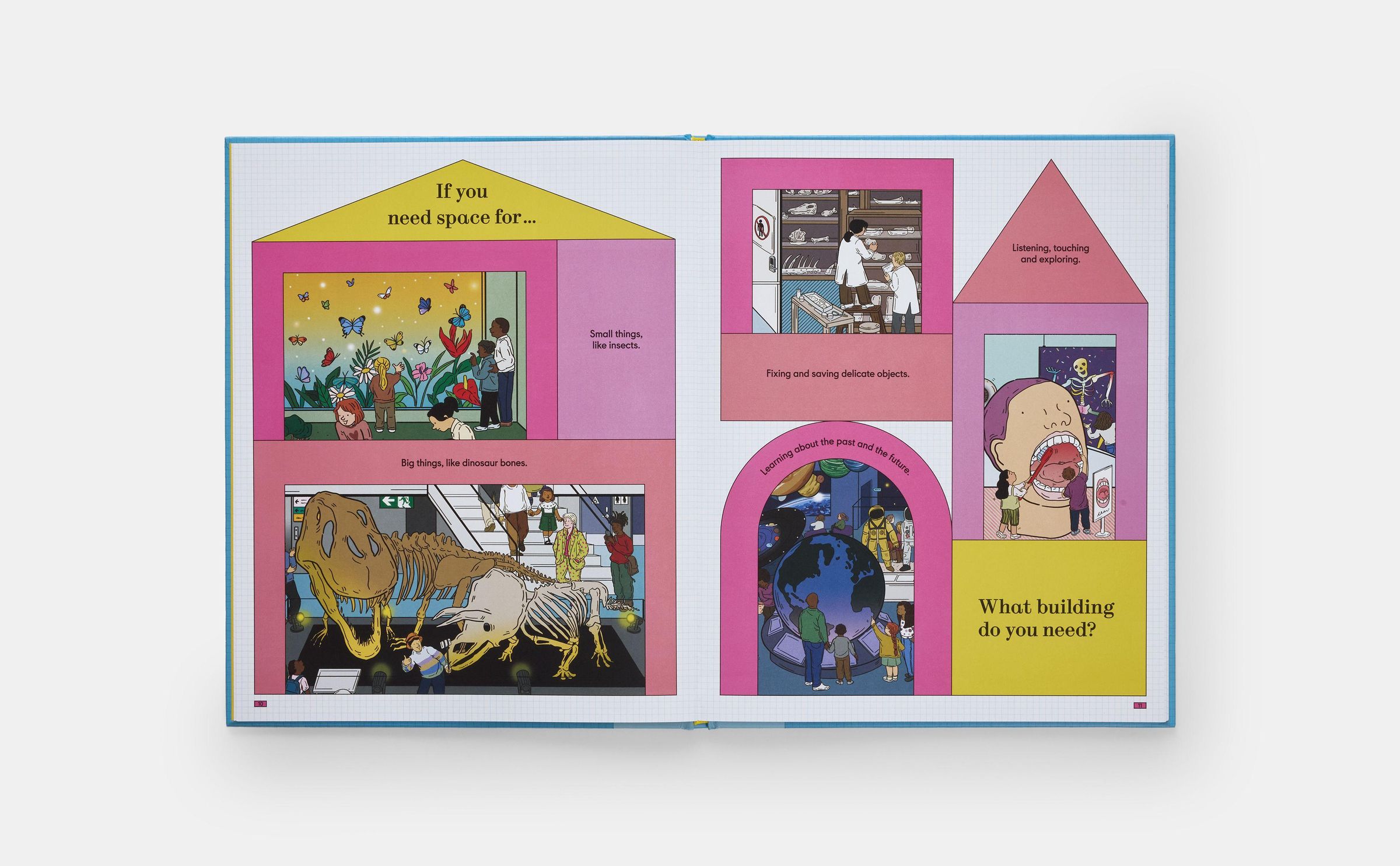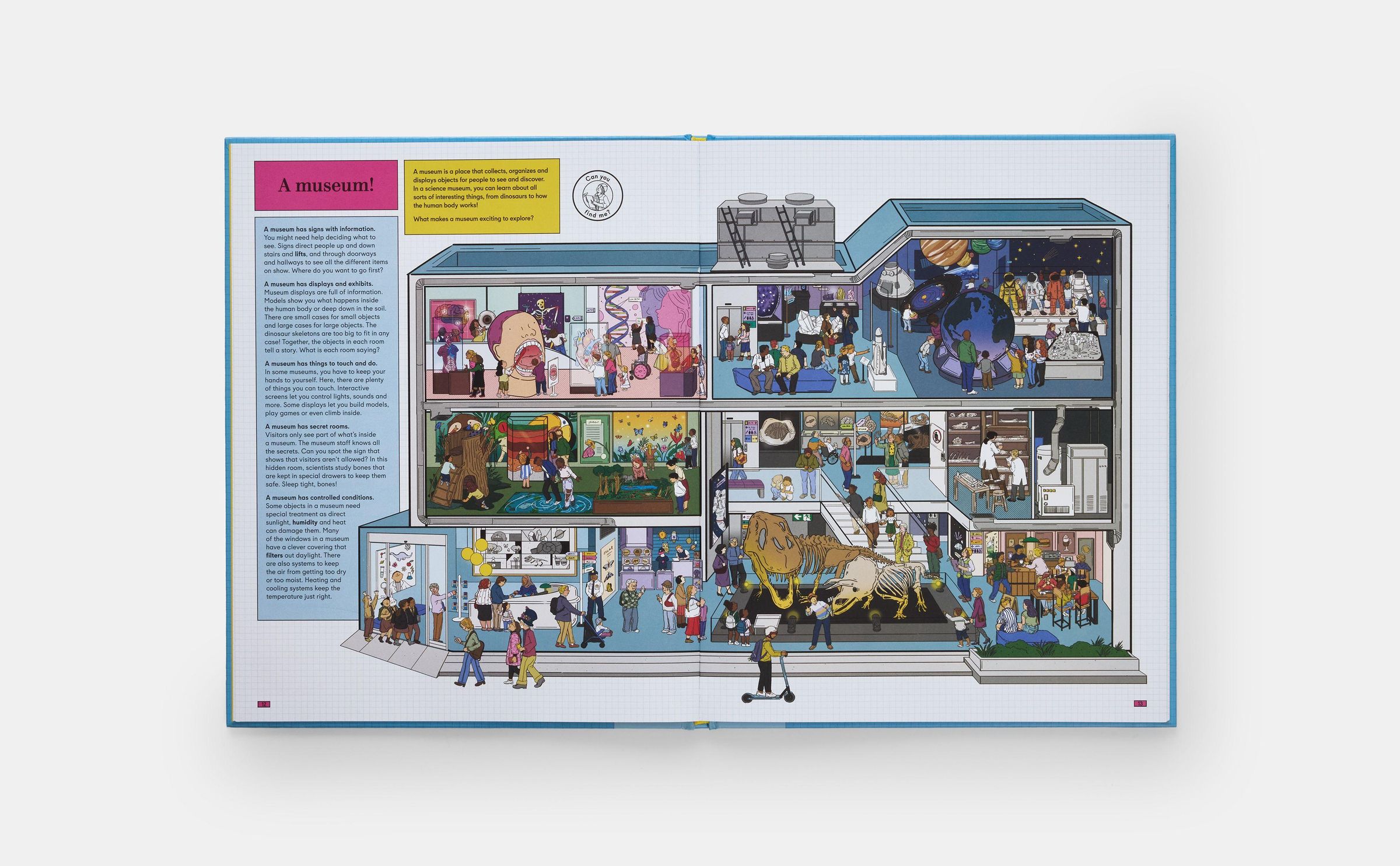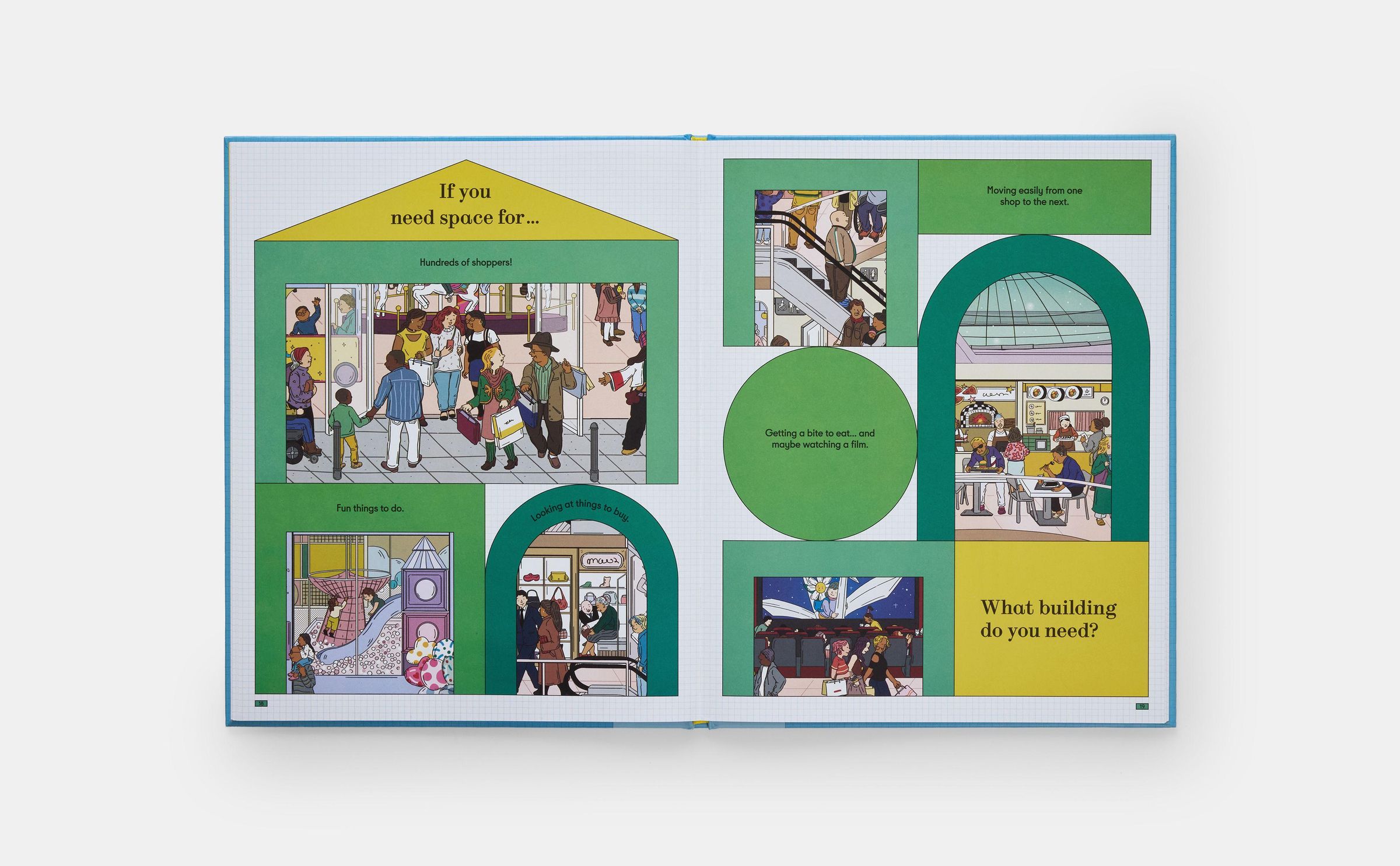 A playful introduction to design and architecture with cutaway scenes of ten buildings, featuring an interactive guessing game and search-and-find