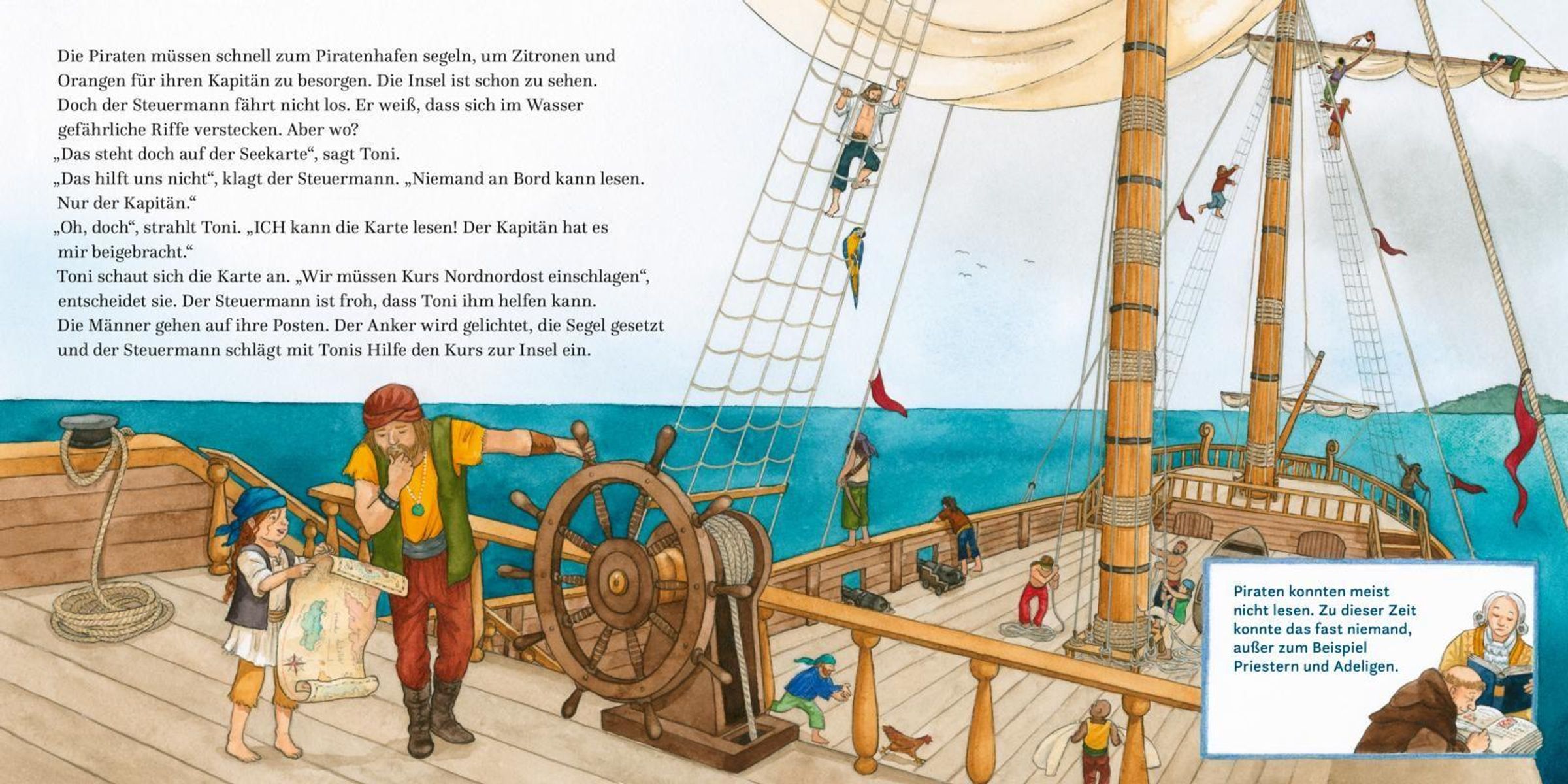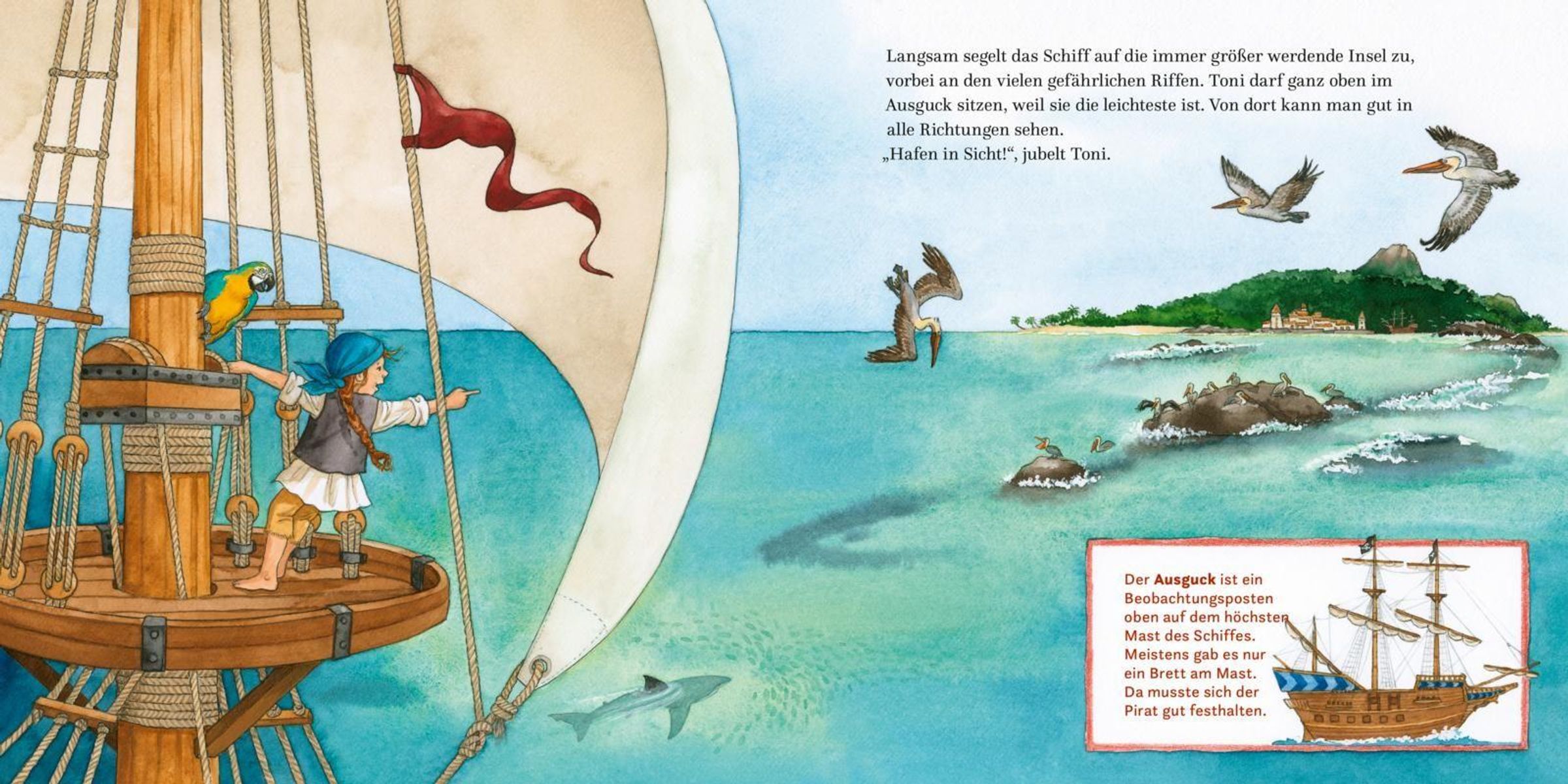 Anker lichten! Heute wollen die Piraten zu ihrem Piratenhafen segeln. Auf dem Weg müssen sie scharfe Korallenriffe durchqueren und andere Schwierigkeiten meistern. Yo-ho-ho, komm mit an Bord und die Abenteuerreise auf hoher See beginnt! Eine spannende Sachgeschichte mit detailreichen Bildern für kleine Piratenfans.