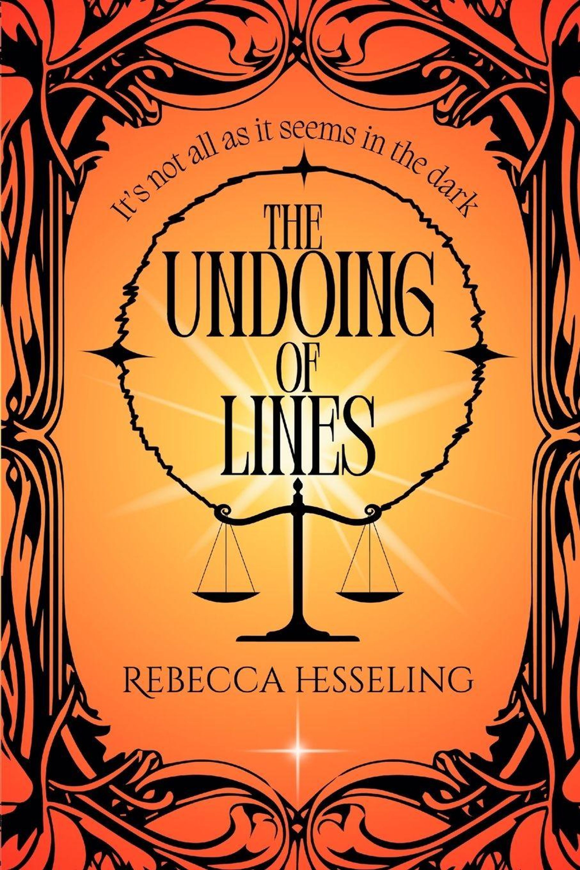 „It's not all as it seems in the dark.“ „The Undoing of Lines“ von Rebecca Hesseling. Waage vor orangem Hintergrund., Buch