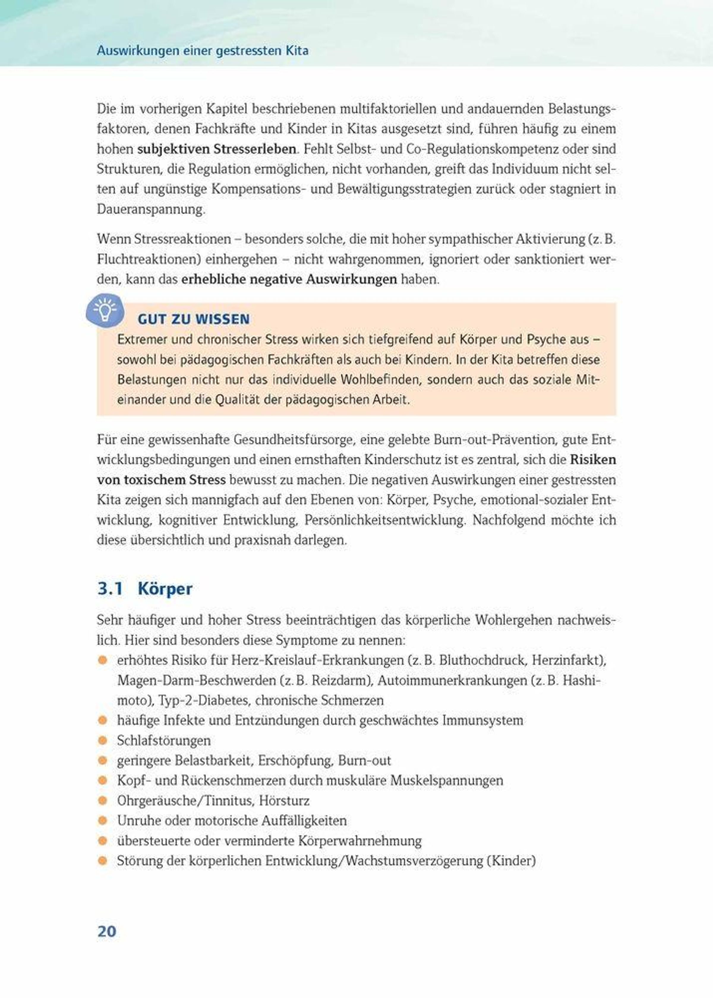 Stress ist in vielen Kindertageseinrichtungen ein ständiger Begleiter: Pädagogische Fachkräfte fühlen sichchronisch belastet und Kinder leiden unter einem überreizten Nervensystem und zeigen infolgedessen herausforderndes Verhalten . Um aus diesem Kreis auszubrechen, braucht es sinnvolle Bewältigungsstrategien .