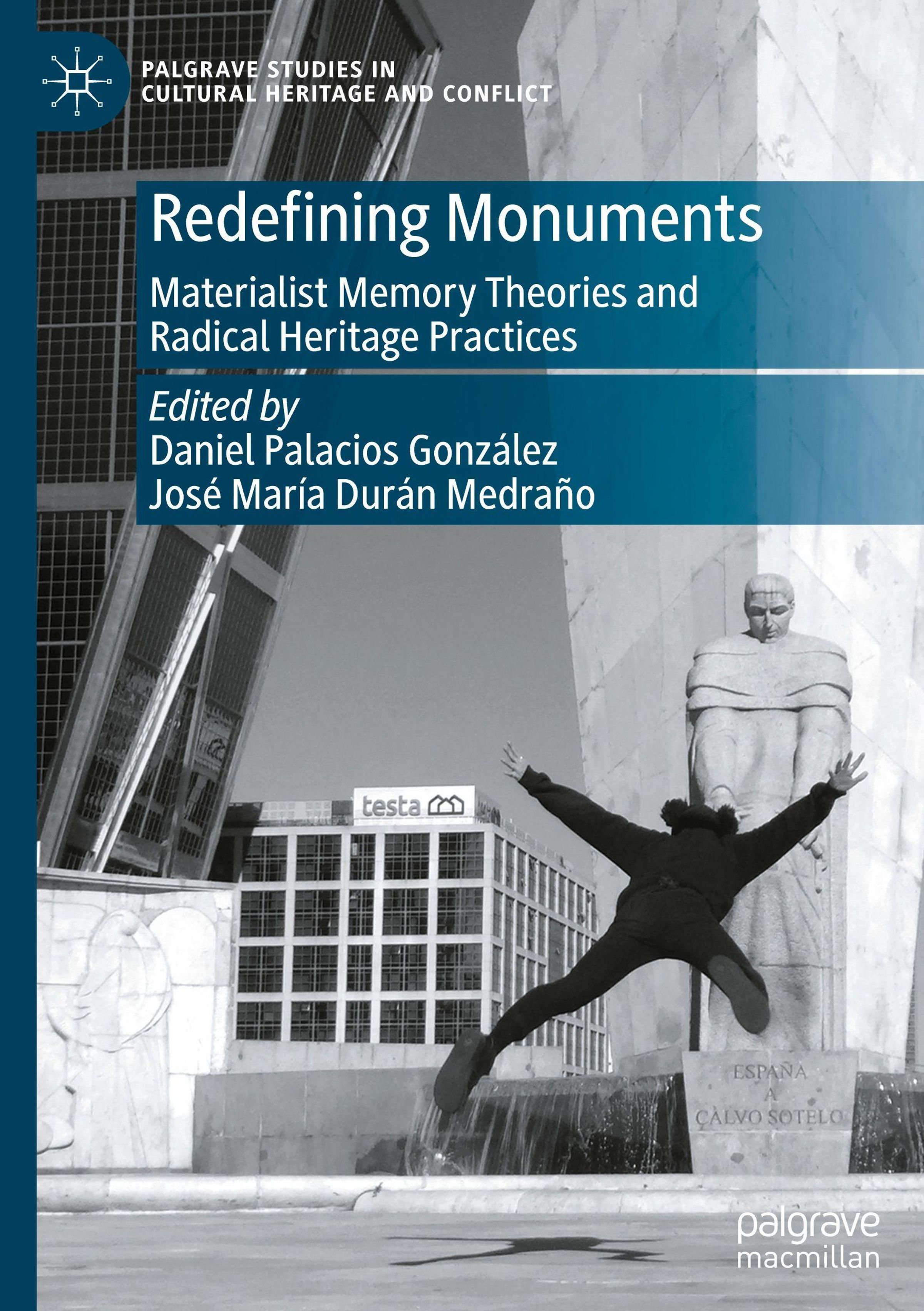 "Redefining Monuments", Theorien des materialistischen Gedächtnisses. Schwarz-Weiß Foto mit springender Person vor Gebäude., Buch