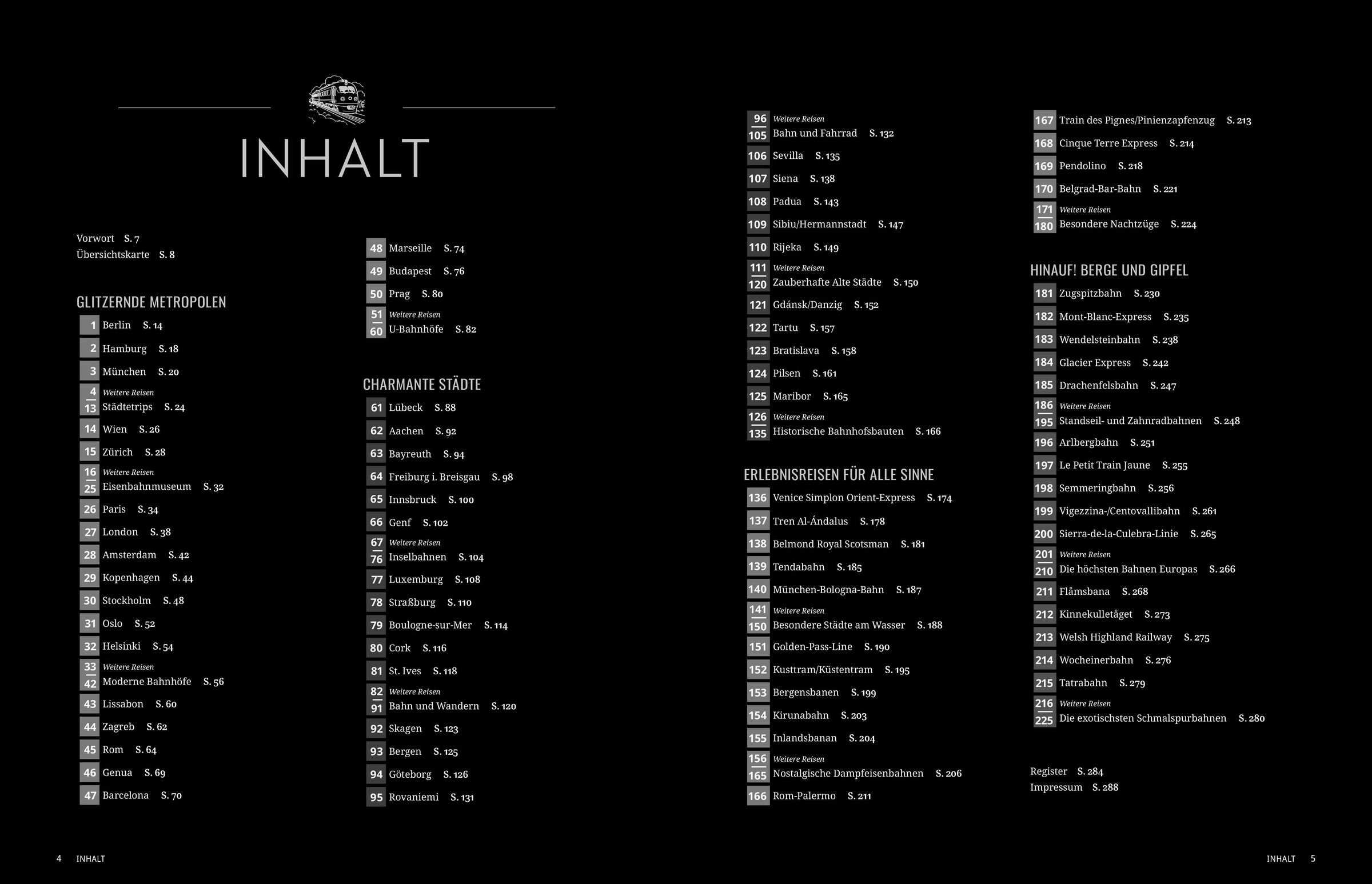Das Buch "225 Zugreisen durch Europa" ist dein Schlüssel zu einer Welt voller Abenteuer, Kultur und unvergesslicher Erlebnisse. Ganz gleich, ob du die Romantik von Nachtzugreisen bevorzugst oder tagsüber die malerische Landschaft bewunderst, wir haben für jeden Reisetyp die passende Route .