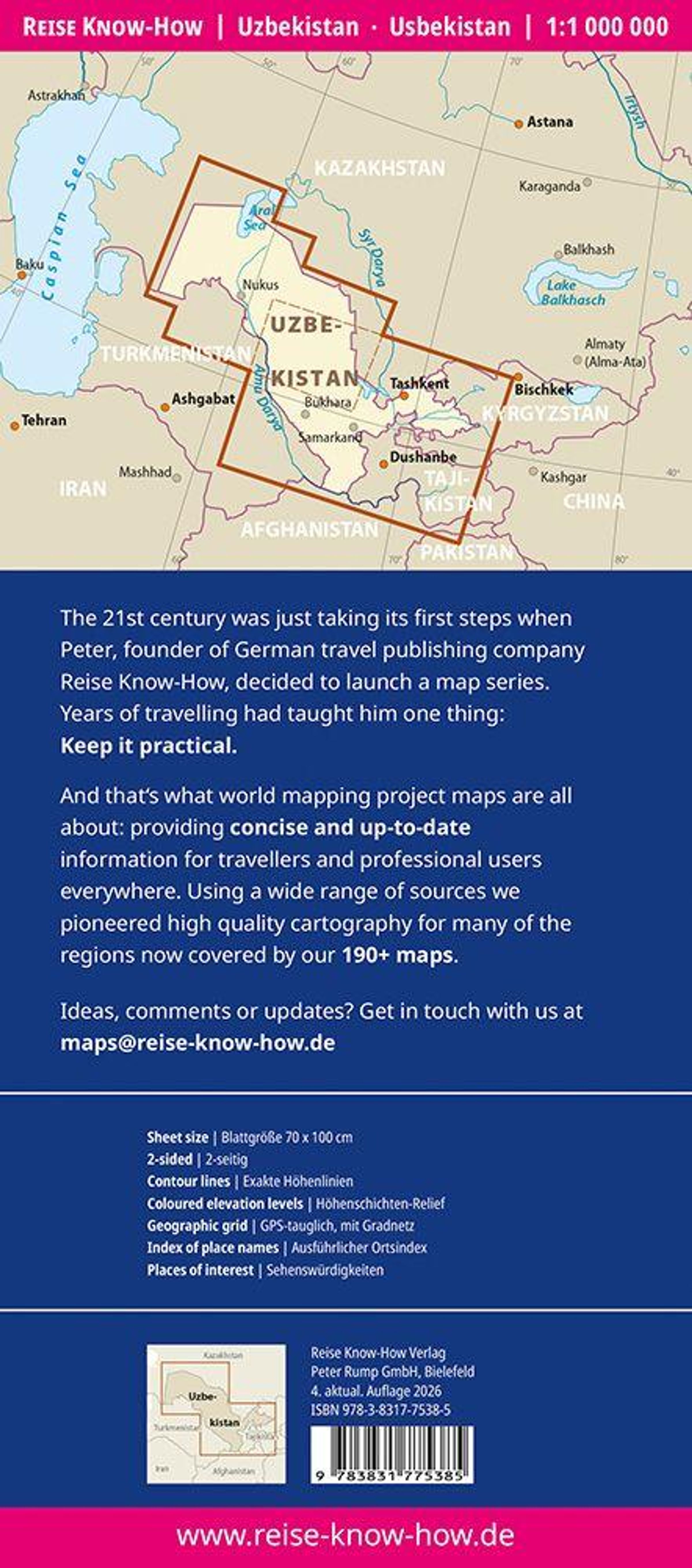 The map of Uzbekistan from Reise Know-How is the perfect companion for any adventure on the go:
