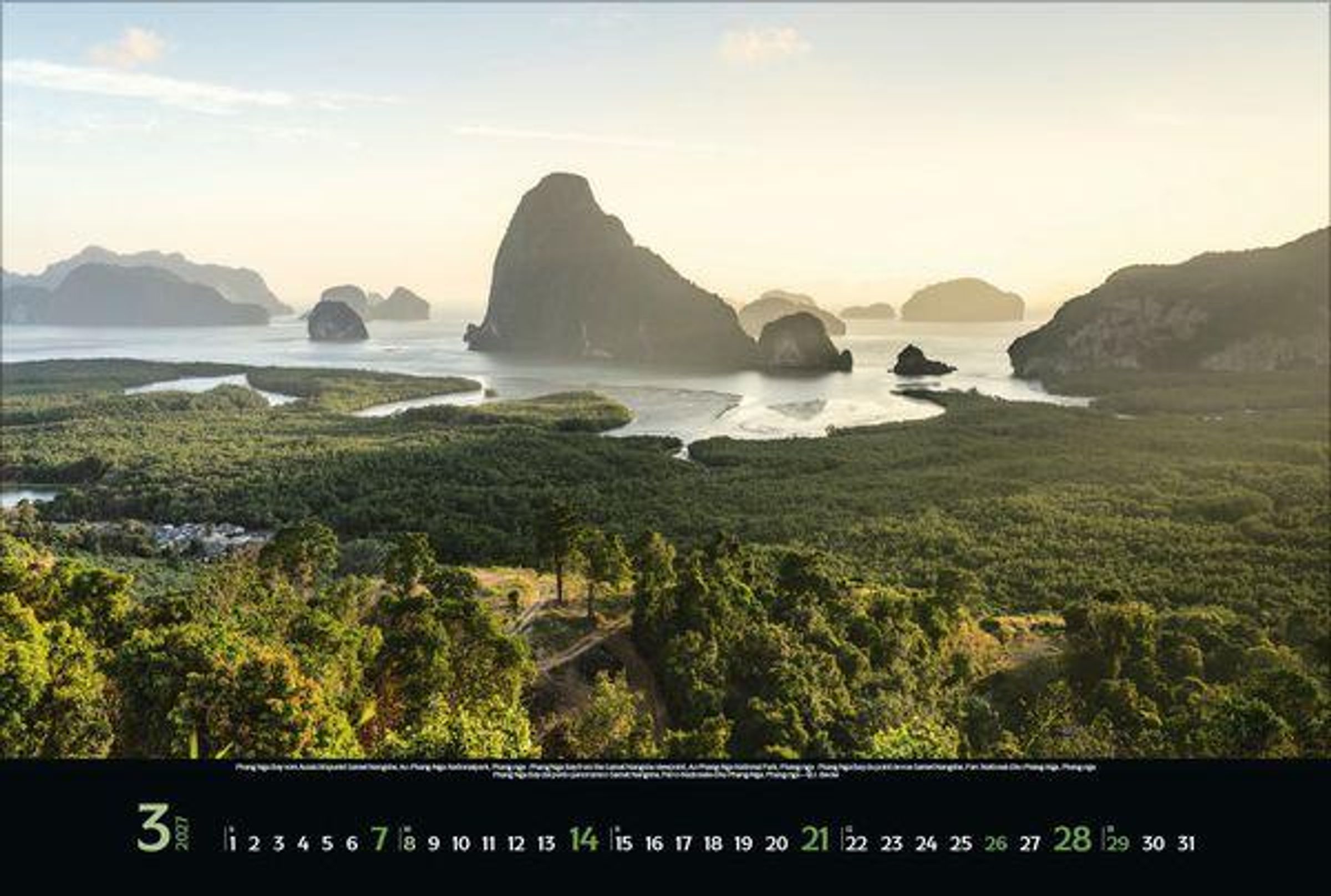 - Großer Foto-Wandkalender mit Bildern von dem beliebten Reiseziel Thailand. Edler schwarzer Hintergrund. PhotoArt Panorama Querformat: 58x39 cm.
