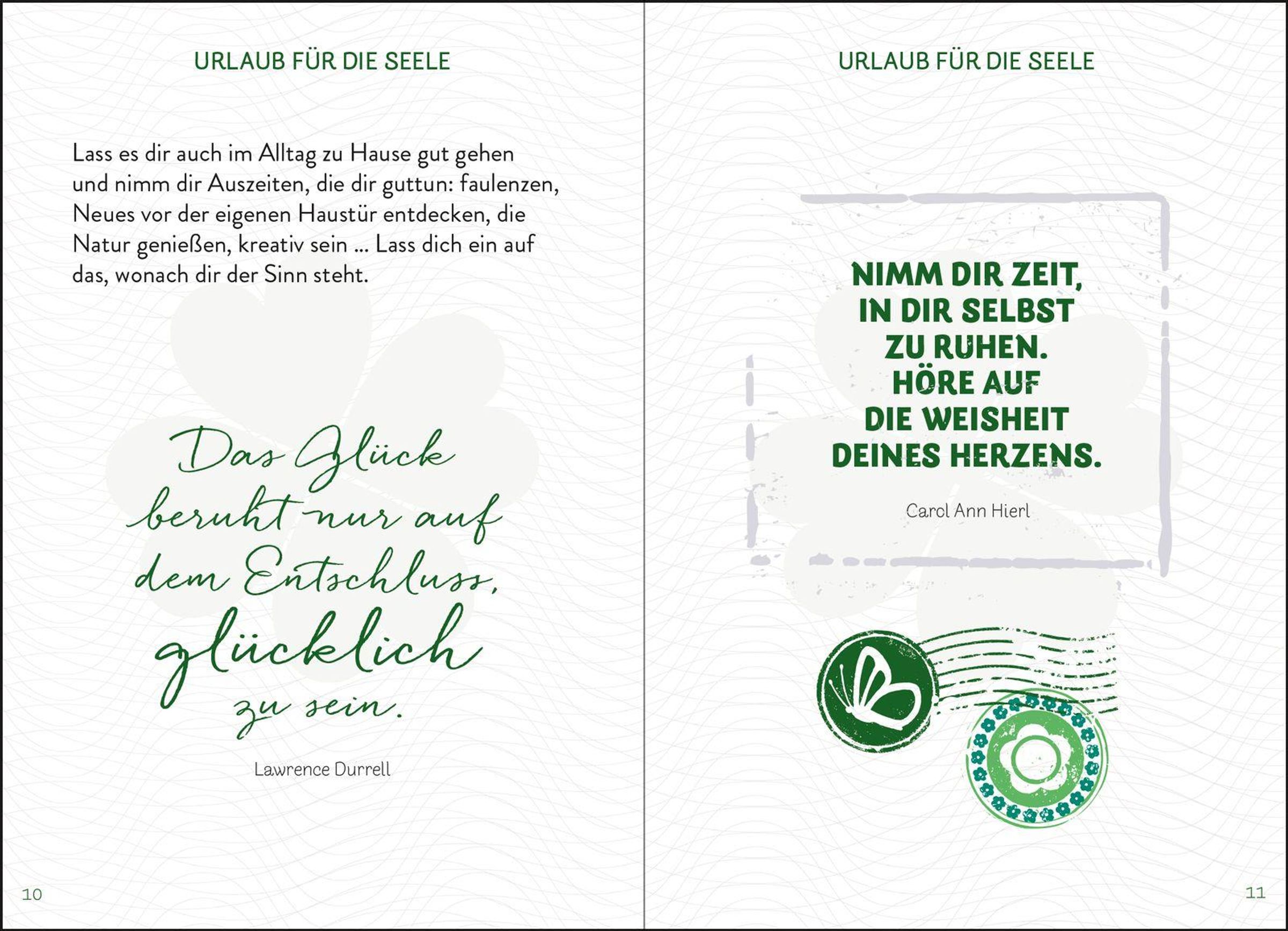 Kurze Texte und passende Zitate sorgen für Motivation und gute Laune. Die grafische Gestaltung mit verschiedenen Stempeln erinnert an einen echten Reisepass. So wird dieses außergewöhnliche Geschenkbüchlein zu einem treuen Begleiter auf deiner Reise zum Glück!