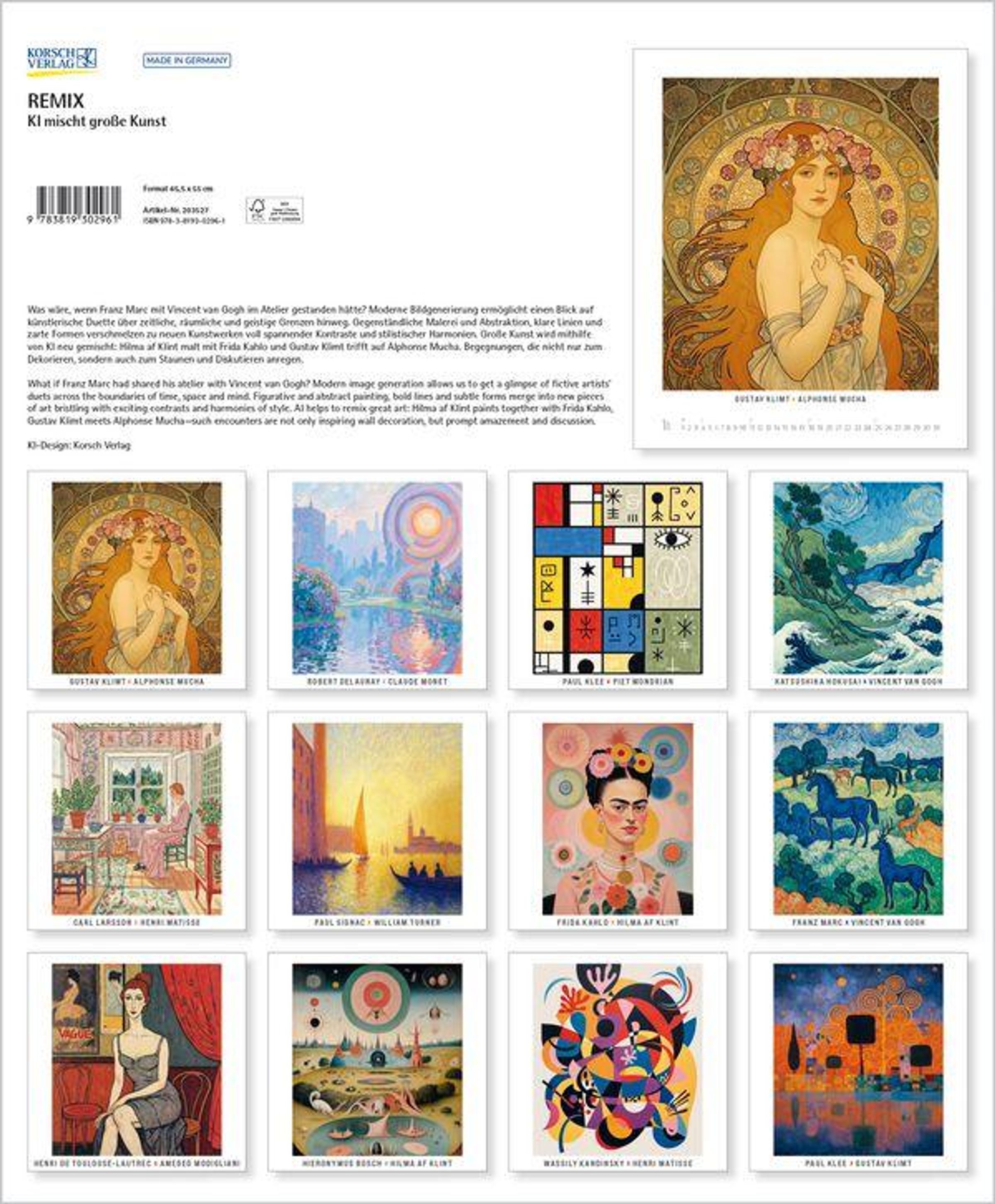 • Großer Kunstkalender mit KI generierten Bildern von bekannten Kunstwerken. Format: 45,5x55 cm.