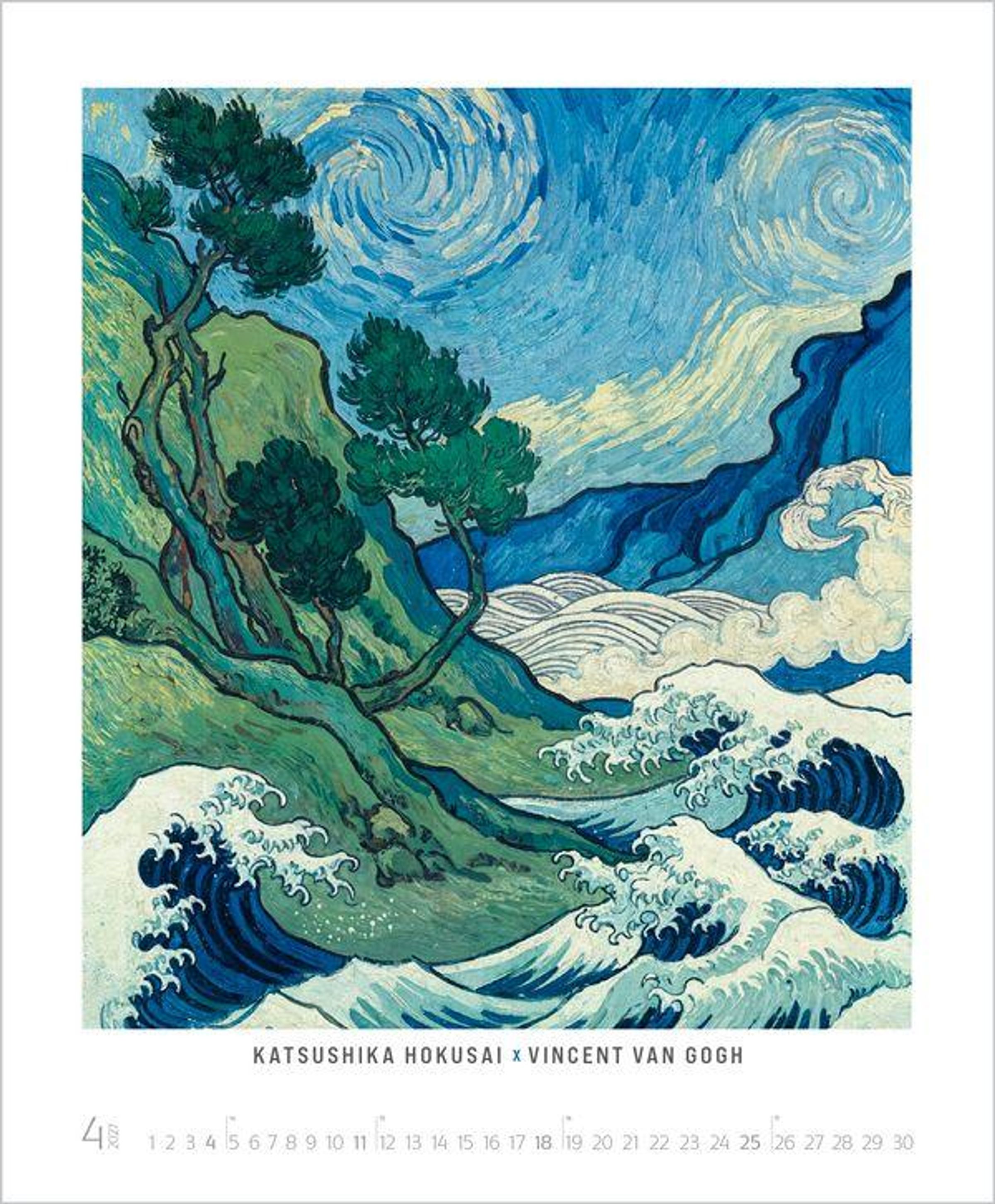 Kunstkalender groß im Hochformat Hervorragende Druckqualität bis ins DetailNeutrales Kalendarium für alle Länder FSC zertifiziertes Papier aus verantwortungsvollen Quellen Schickes randabfallendes Design für einen wertigen Anblick Ihres Wandkalenders