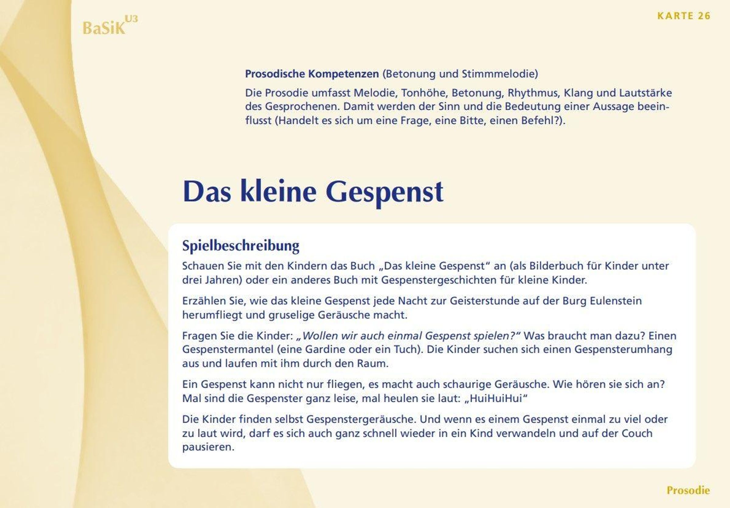 Die vorliegende Spielesammlung ist konzipiert für die Praxis der Sprachbildung und Sprachförderung. Nach einer kurzen Beschreibung des jeweiligen Förderbereichs wird eine der 40 Spielideen erläutert. Es folgen Anregungen und Tipps, worauf bei der Umsetzung zu achten ist: Wie wir die Interessen der Kinder berücksichtigen und uns "sprachförderlich" verhalten. Abschließend wird jeweils der Bezug zu dem Beobachtungsbogen BaSiK hergestellt. Die Karteikarten verstehen sich als Impulse, sie geben Beispiele für Fördermöglichkeiten.