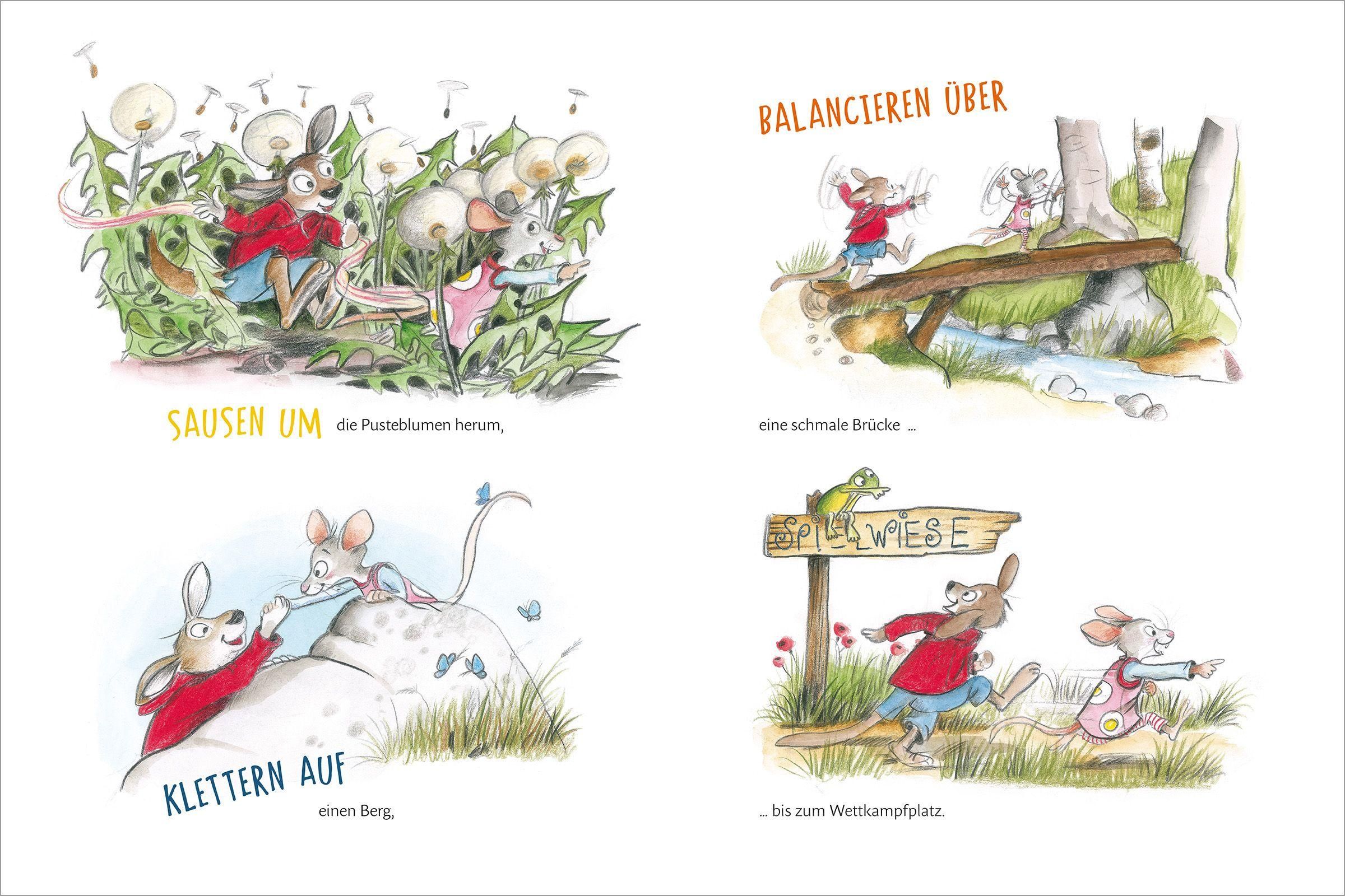 Konrad Känguru und Rita Rennmaus. Konrad hüpft zum Hauptgewinn