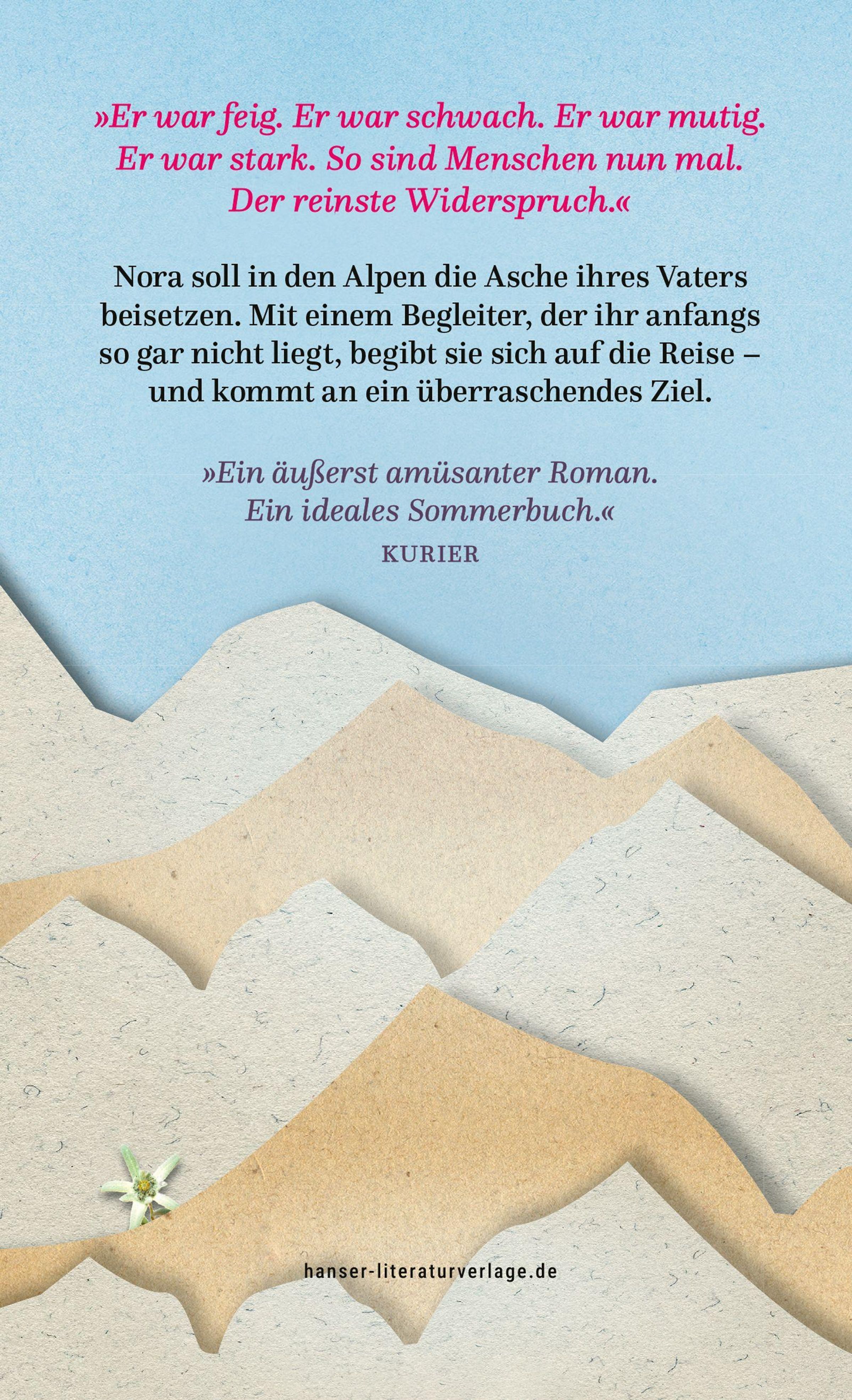 Nora hat ihren Vater verloren. Das wäre schon schlimm genug, doch dann erfährt sie seinen letzten Willen. Sie muss Paris und ihr schönes Leben in Frankreich verlassen, um mit der Asche ihres Vaters im Handgepäck und einem pedantischen jungen Notariatsgehilfen, der ihr täglich das nächste Etappenziel mitteilt, eine Wanderung zu unternehmen - durch Österreich, ein Land, das sie kaum kennt. Nora, die lebenslustige Chaotin, und Bernhard, der strenge Asket, folgen zwischen Regengüssen, Wortgefechten und allmählicher Annäherung einem Plan, der ihr Leben auf den Kopf stellen wird. Ein Roman über Liebe und Freundschaft und über eine ungewöhnliche Reise mit überraschendem Ziel.