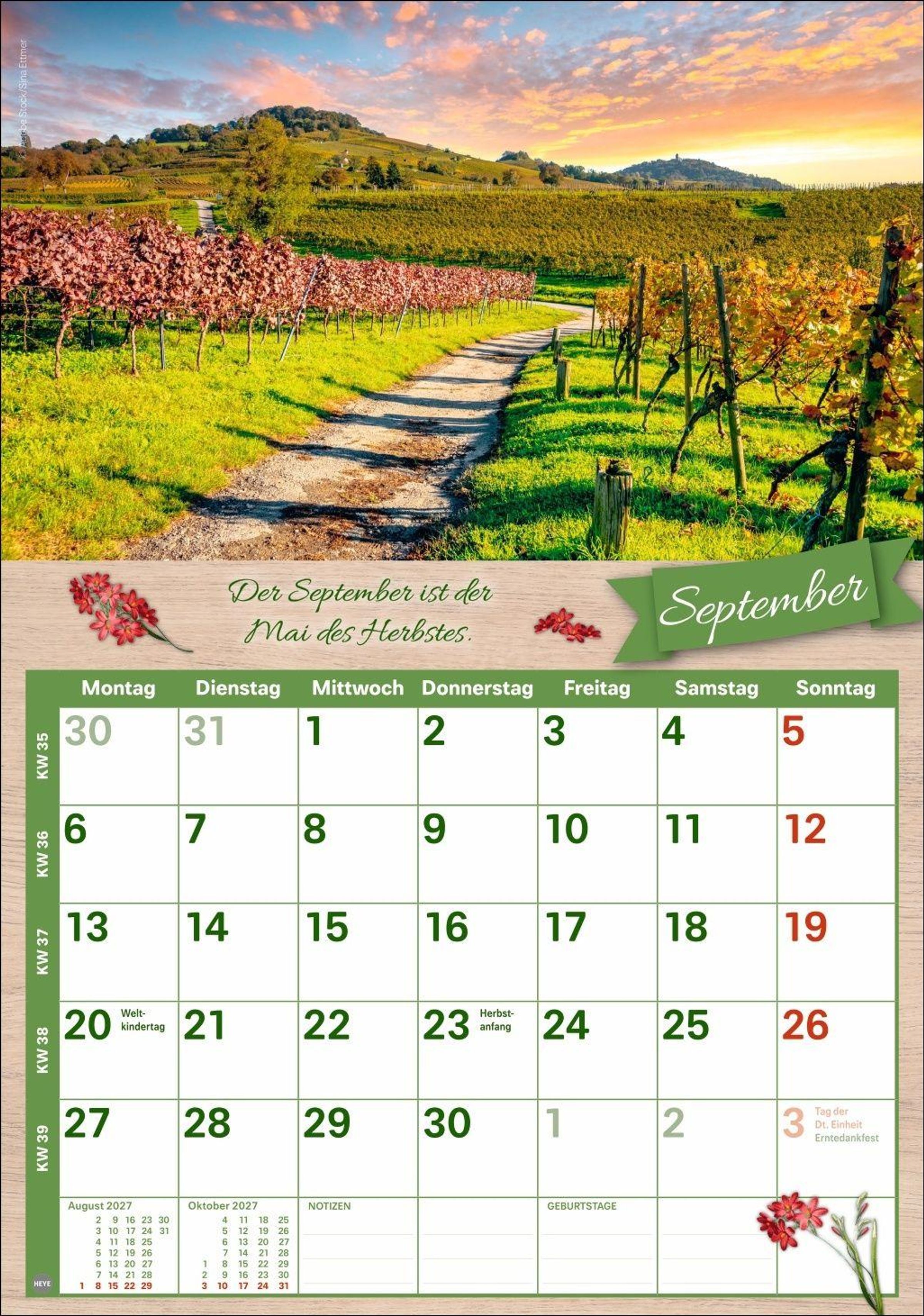 Platz für Eintragungen, Ruhestand-Witzen und stimmungsvolle Fotos: Der Kalender 2027 erfüllt alle Bedürfnisse