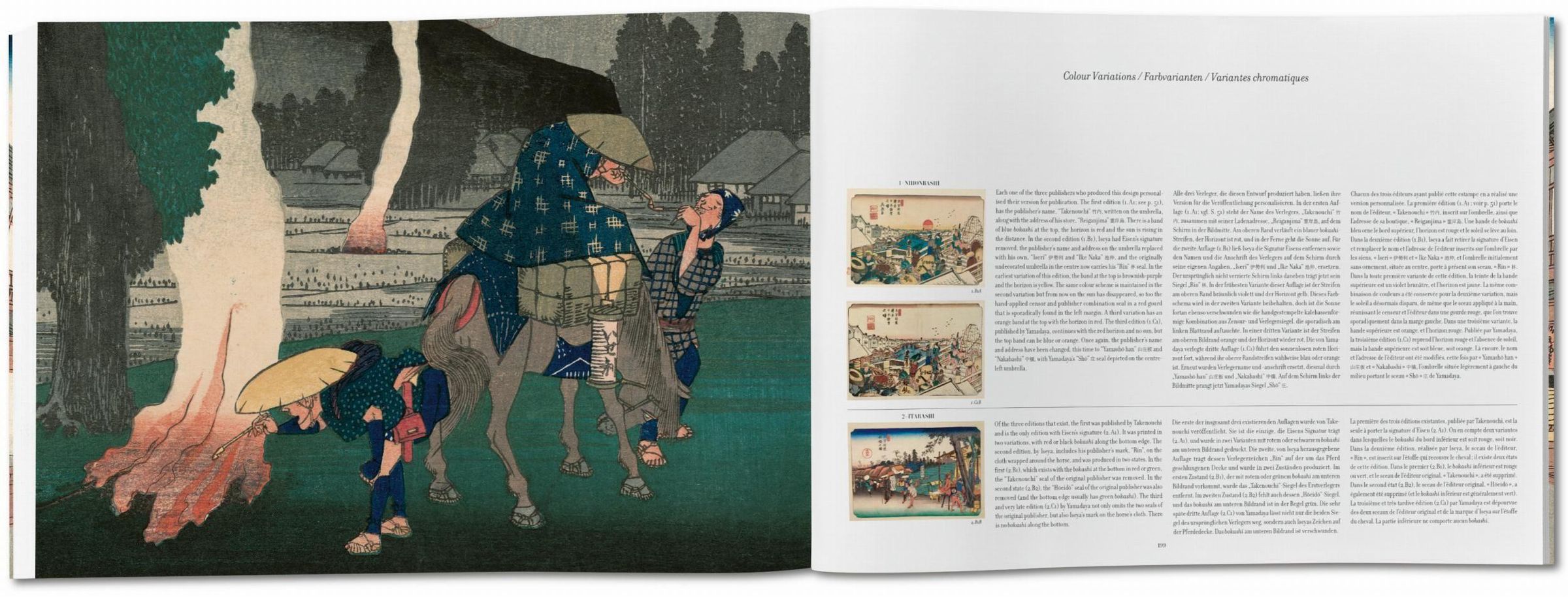 Die Sammlung Die neunundsechzig Stationen des Kisokaid¿ stellt nicht nur einen Höhepunkt der Holzschnittkunst dar - mit kühnen Kompositionen und experimentellem Einsatz von Farbe -, sondern bildet auch einen reizvollen Bildteppich vom Japan des 19. Jahrhunderts, lange bevor die Industrialisierung über das Reich der aufgehenden Sonne hereinbrach. Diese Ausgabe von TASCHEN zeigt das einzige bekannte Exemplar dieser Serie, das fast vollständig aus seltenen Erstdrucken besteht, und lässt so den Bilderzyklus in großem Format und gebührender Pracht wiederauferstehen. Als ideale Ergänzung zu TASCHENs Hundert berühmte Ansichten von Edo ist sie zugleich ein Augenschmaus und Zeugnis einer untergegangenen Epoche.