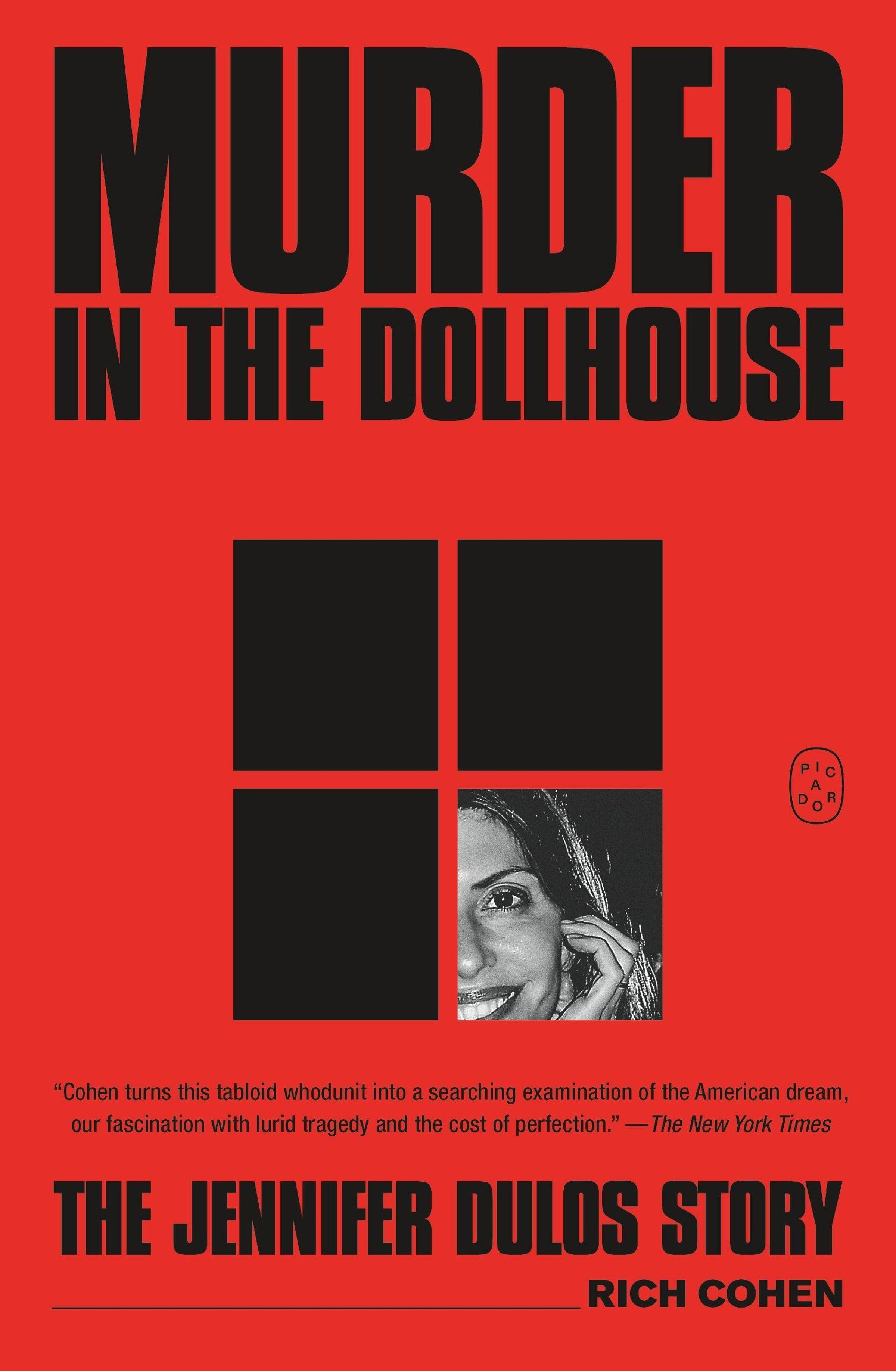 „MURDER IN THE DOLLHOUSE“ in großen schwarzen Buchstaben, darunter „THE JENNIFER DULOS STORY“. Rechteckige Anordnung, darin ein Frauenporträt., Buch