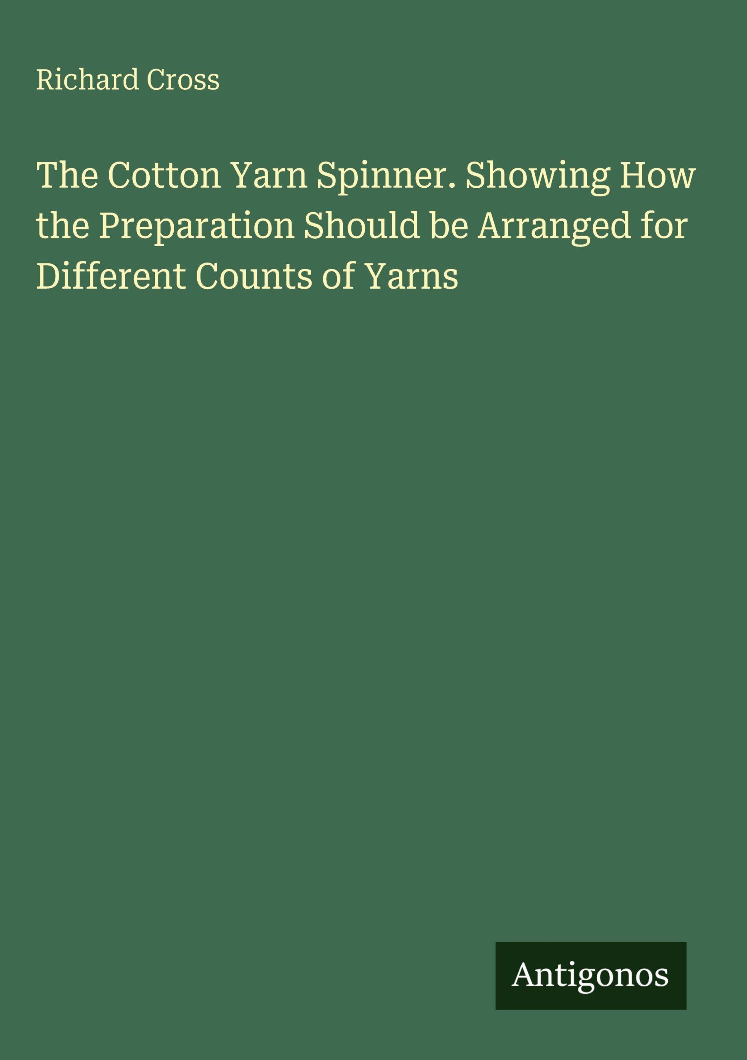 Richard Cross: The Cotton Yarn Spinner. Showing How the Preparation Should be Arranged for Different Counts of..., Gebunden