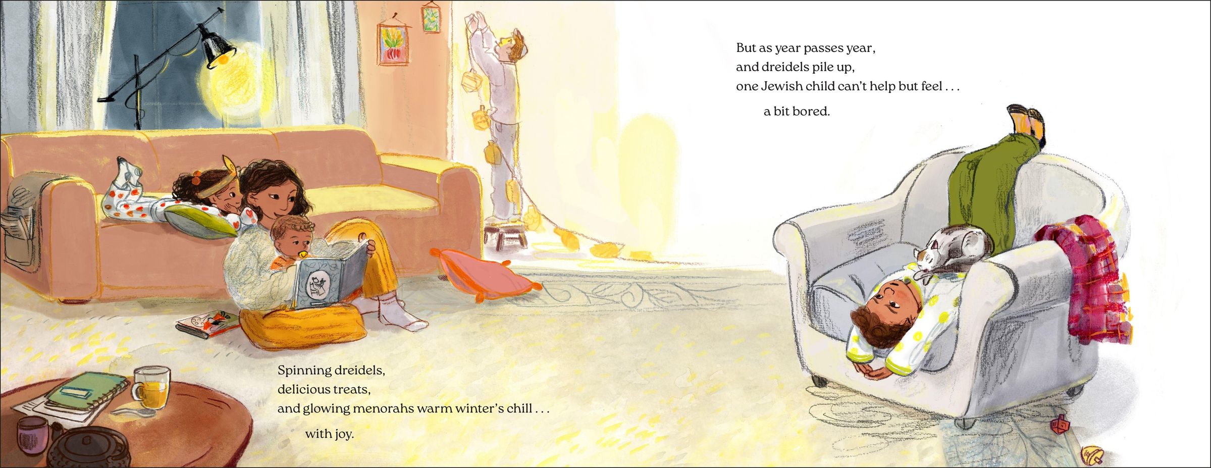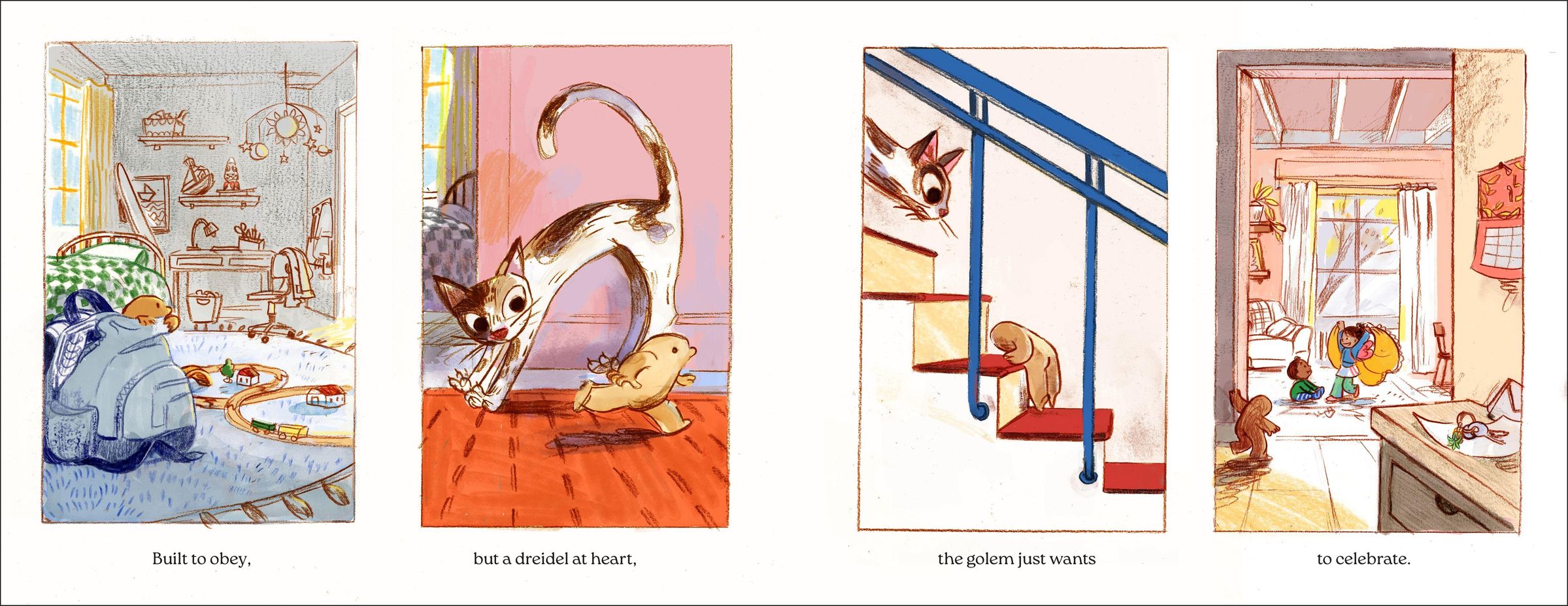 But, with his bulky body and playful curiosity, this clumsy golem spreads more trouble than joy. He eats all the festive treats, and somersaults around the house until...oh no ! He breaks the family's menorah!