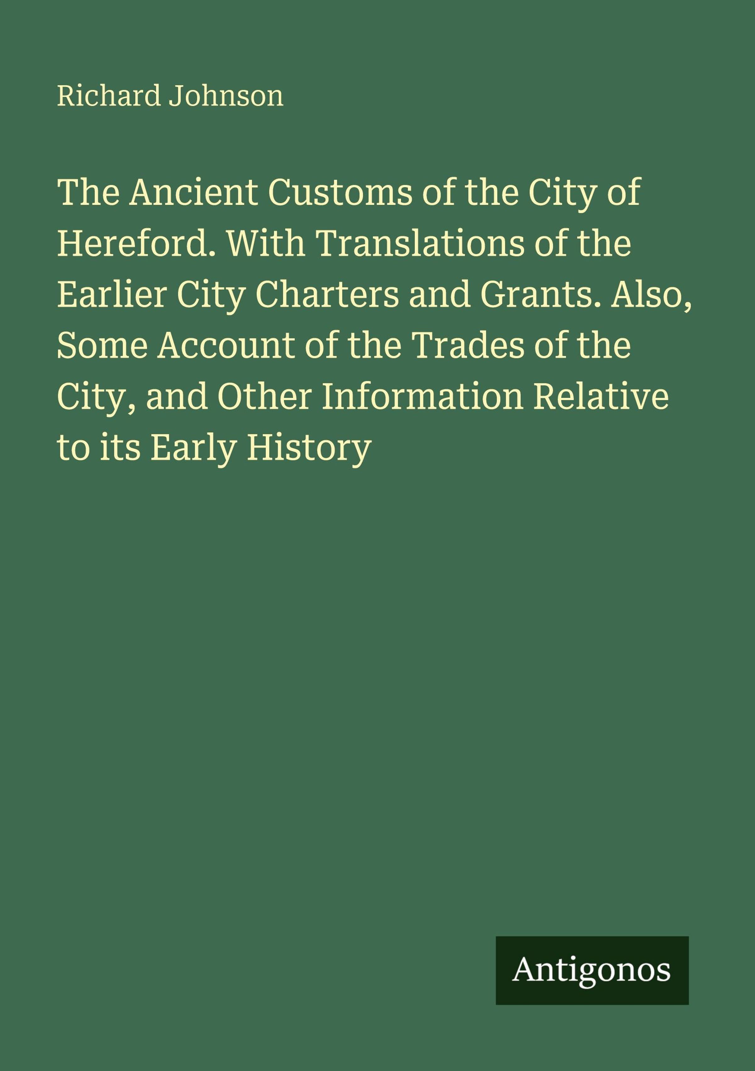 The Ancient Customs of the City of Hereford. With Translations of the Earlier City Charters and Grants. Also, Some Account of the Trades of the City, and Other Information Relative to its Early History