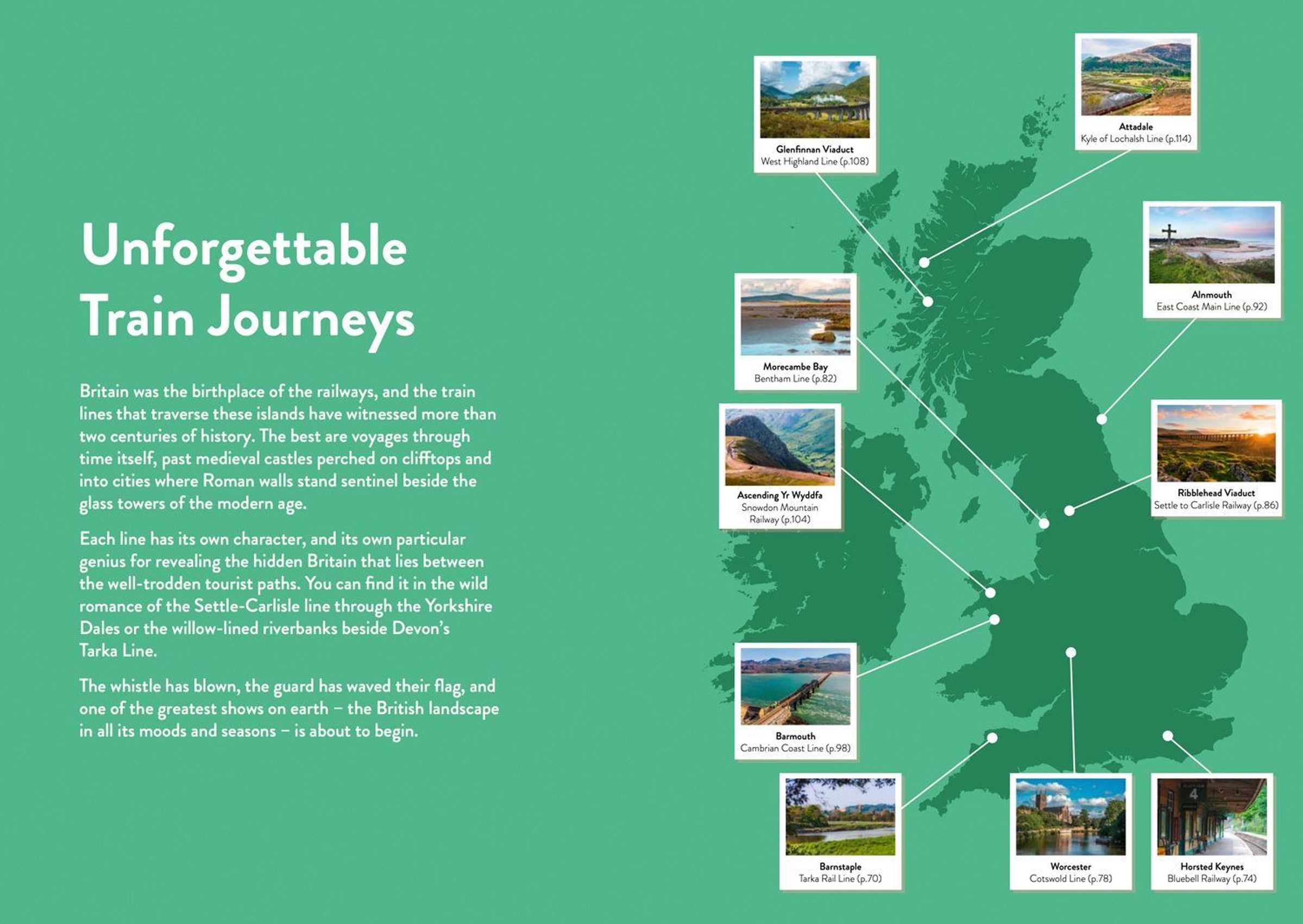 This is guide to the most jawdroppingly beautiful trips you can take through Britain's landscape. Whether it's getting an open top bus along the coast, riding a steam train up a mountain, floating along an idyllic river, driving through spectacular hills or strolling in an amazing valley, there's an adventure here for everyone. And the chance to slow down and connect with our landscape and heritage in a way that's rare these days.