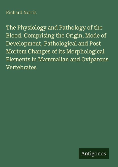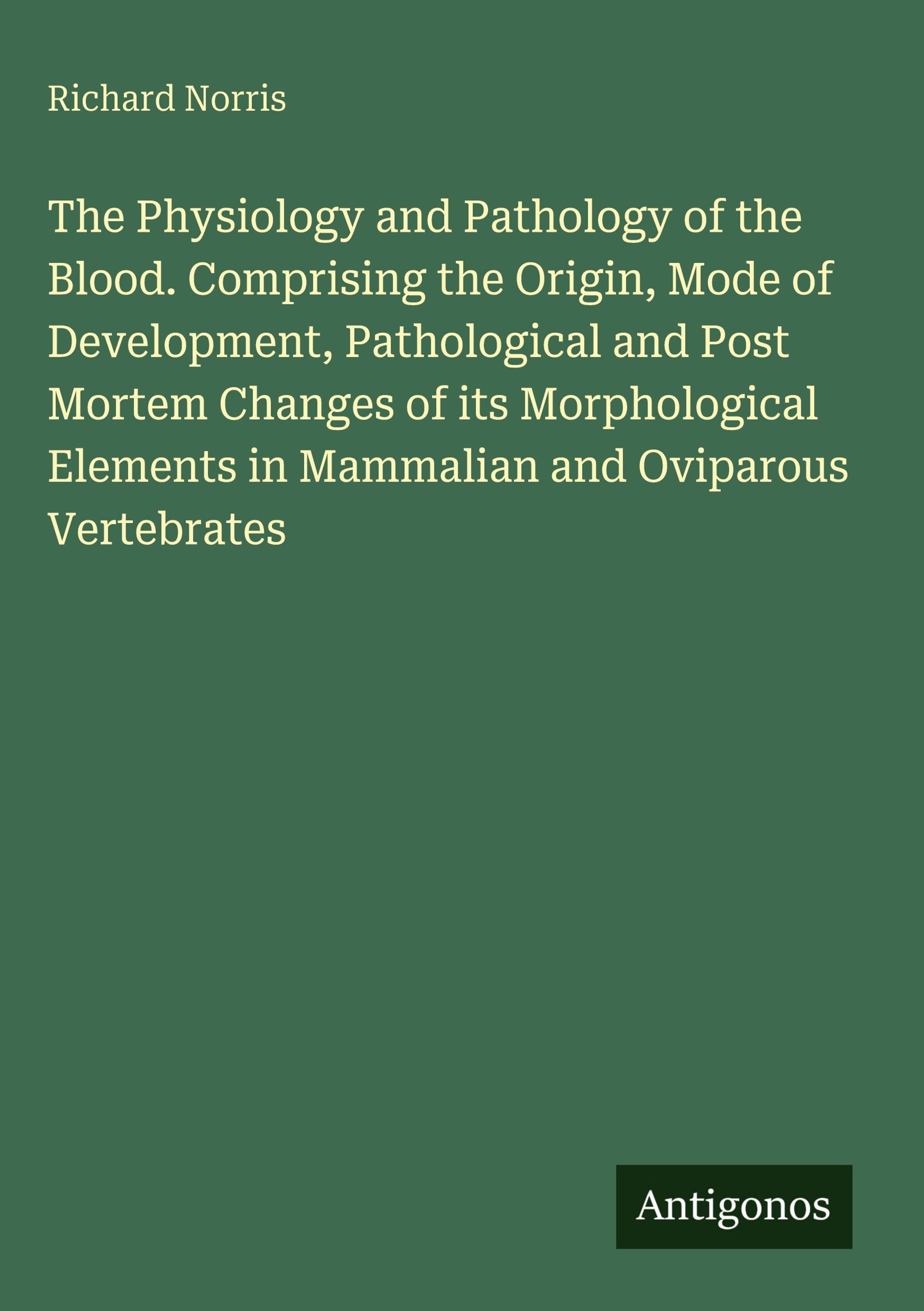 Richard Norris: The Physiology and Pathology of the Blood. Comprising the Origin, Mode of Development,..., Gebunden