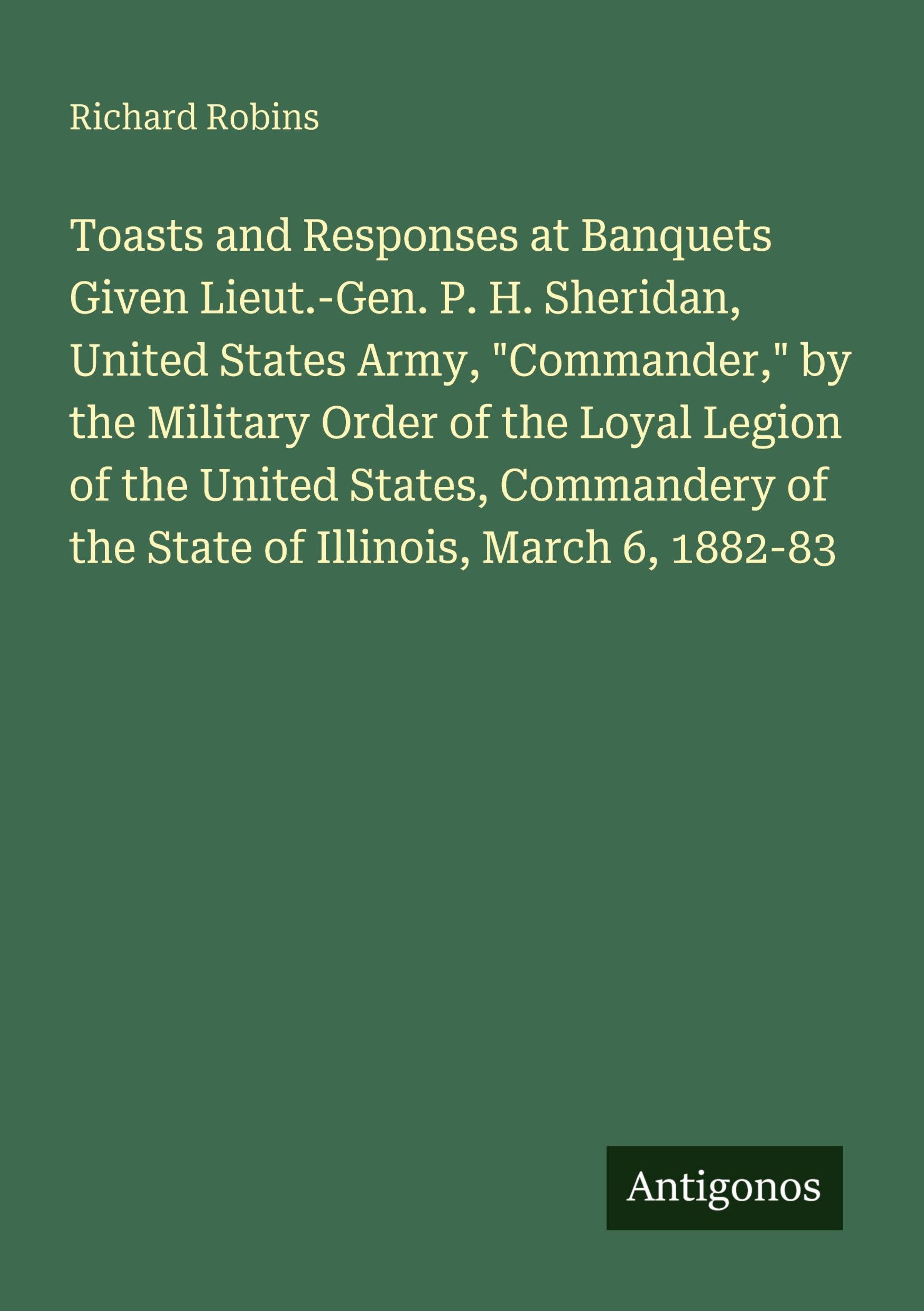 Toasts and Responses at Banquets Given Lieut.-Gen. P. H. Sheridan, United States Army, "Commander," by the Military Order of the Loyal Legion of the United States, Commandery of the State of Illinois, March 6, 1882-83