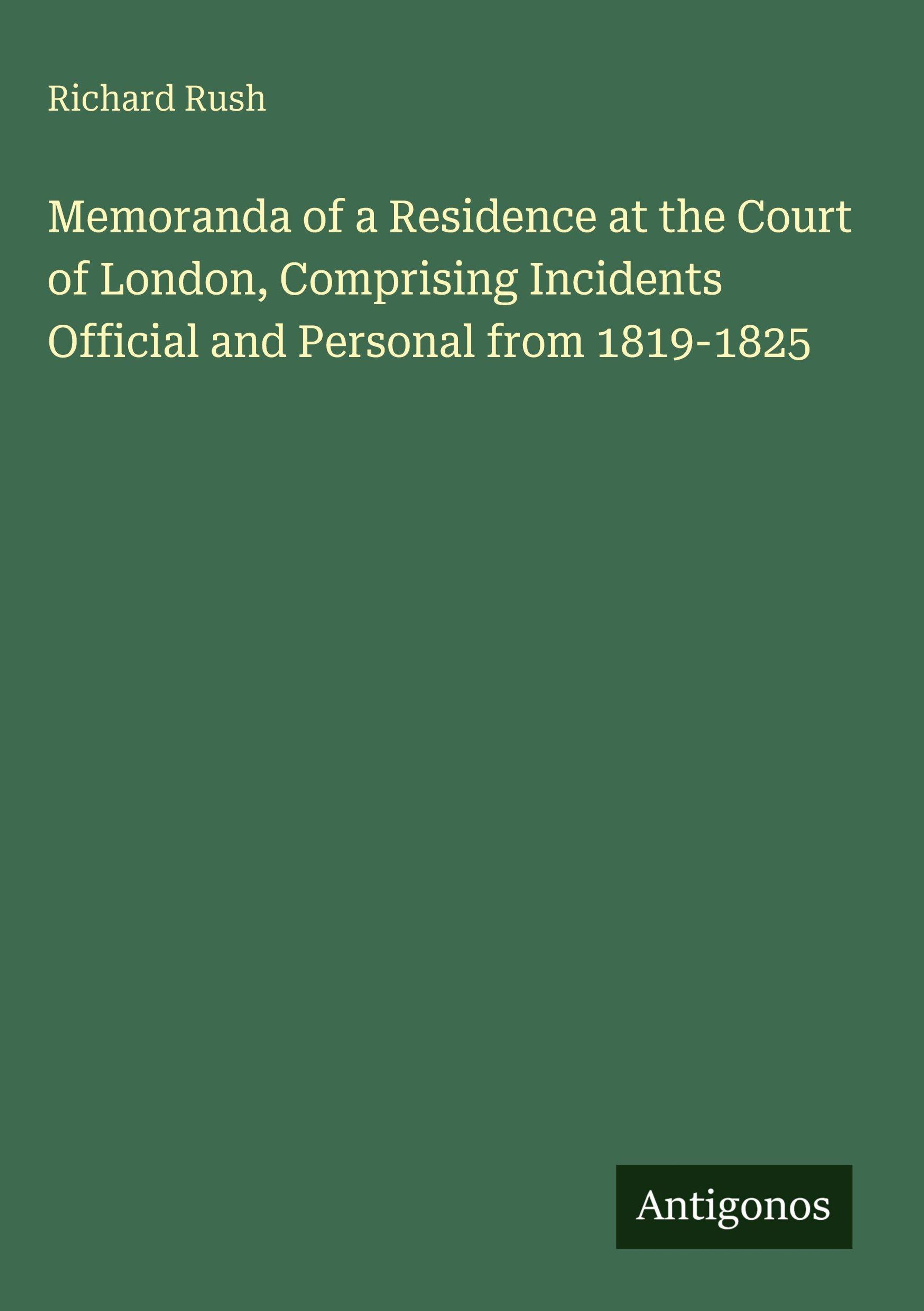 Richard Rush: Memoranda of a Residence at the Court of London, Comprising Incidents Official and Personal from..., Gebunden