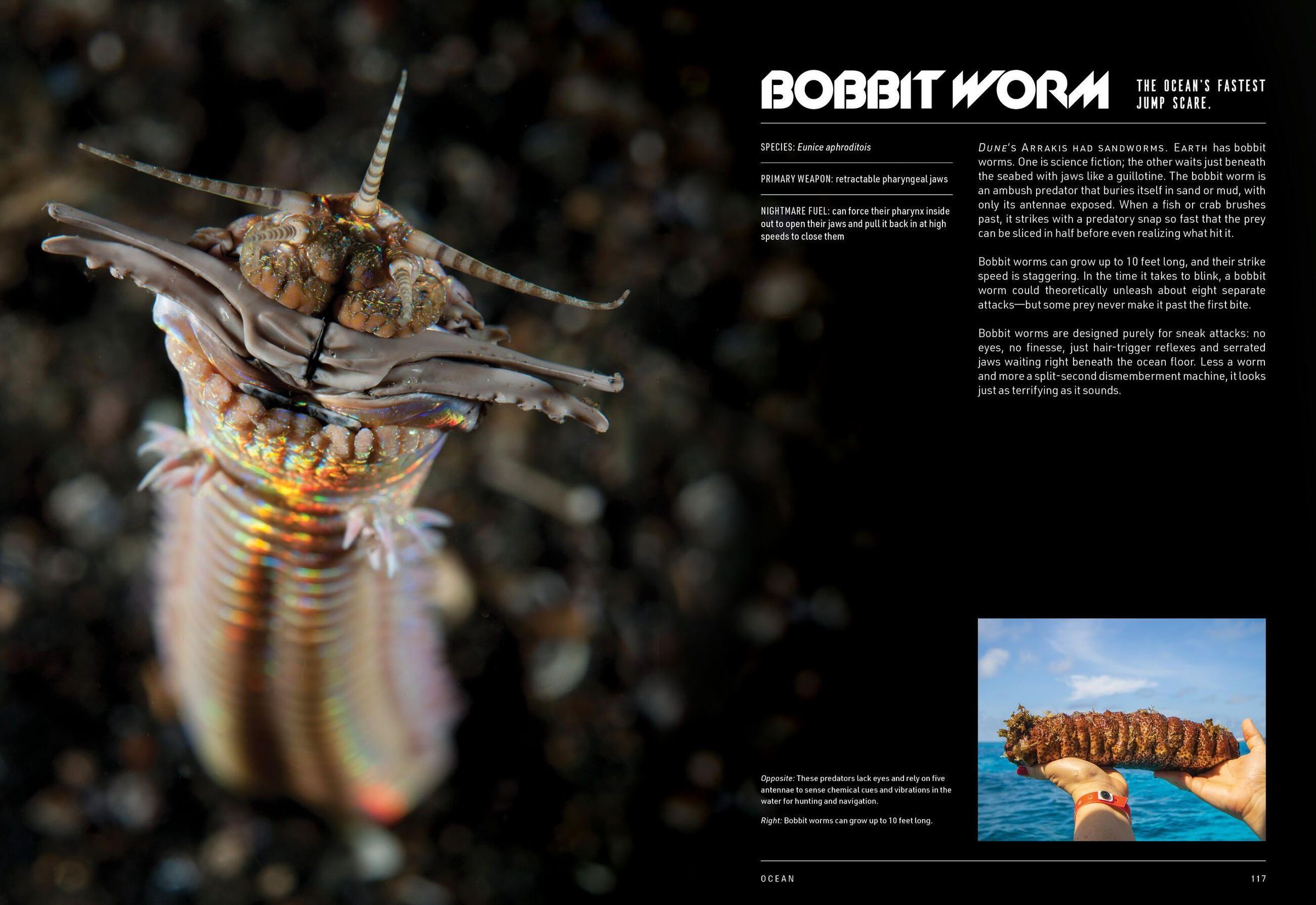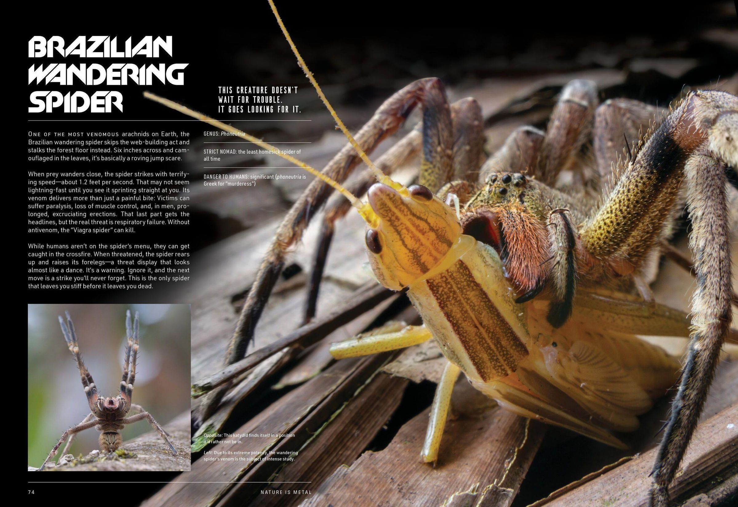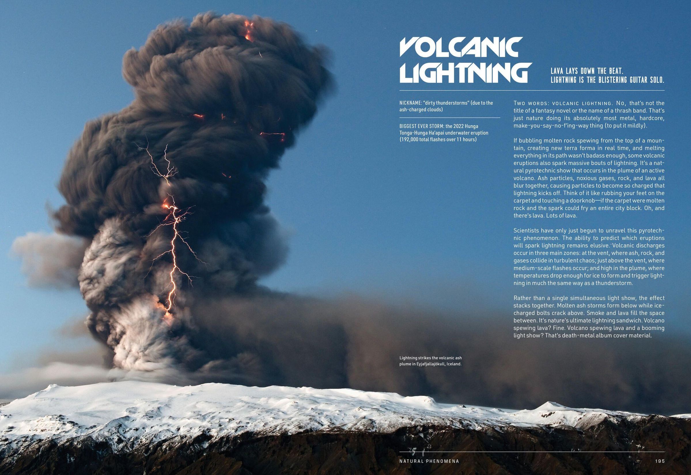Jewel wasps that stab and zombify prey, then bury their victims alive as a living pantry for their hatching eggs. Bronzeback snakes that literally fly through the jungle air to make their attack. Sandbox trees that blast poisonous, shrapnel-like bark at up to 160 mph. With sections separated ecosystems such as forests, savannas, and oceans---plus a face-melting section on natural phenomena like volcanic lightning and avalanches---this is anything but your touchy-feely nature book.