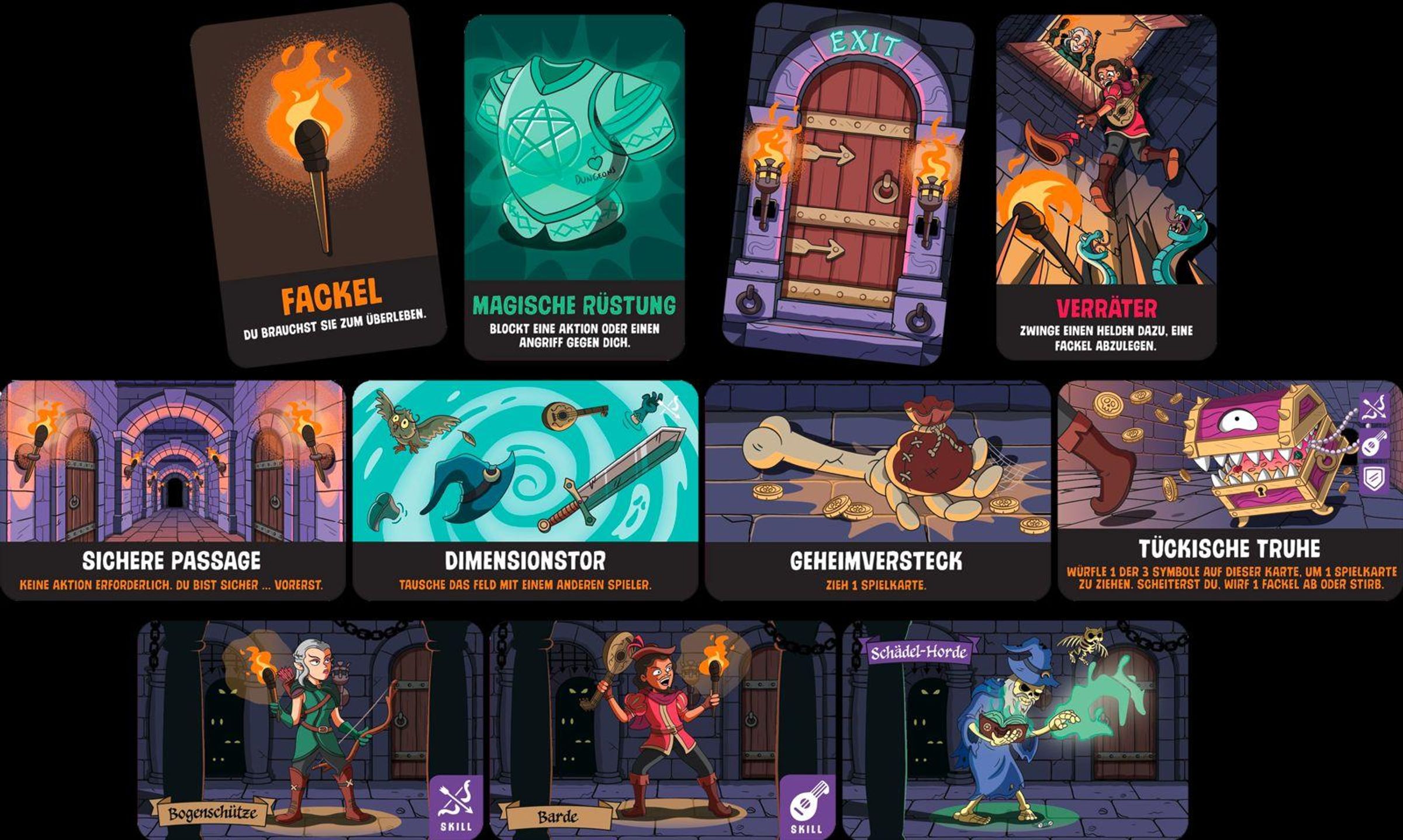 Du und deine Freunde seid im Kerker des düsteren Dungeon Lords gefangen. Doch ihr wisst: Nur einer von euch kann den rettenden Ausgang erreichen. Auf dem Weg in die Freiheit musst du deine Fackeln clever einteilen, um nicht von der Finsternis verschluckt zu werden! Kämpfe als Zauberer oder Barde gegen hungrige Drachen, nimm dich vor tückischen Truhen in acht und sabotiere gnadenlos deine Mitspieler! Denn wer scheitert, wird Teil der Armee des Dungeon Lords und macht fortan Jagd auf die Verbliebenden.