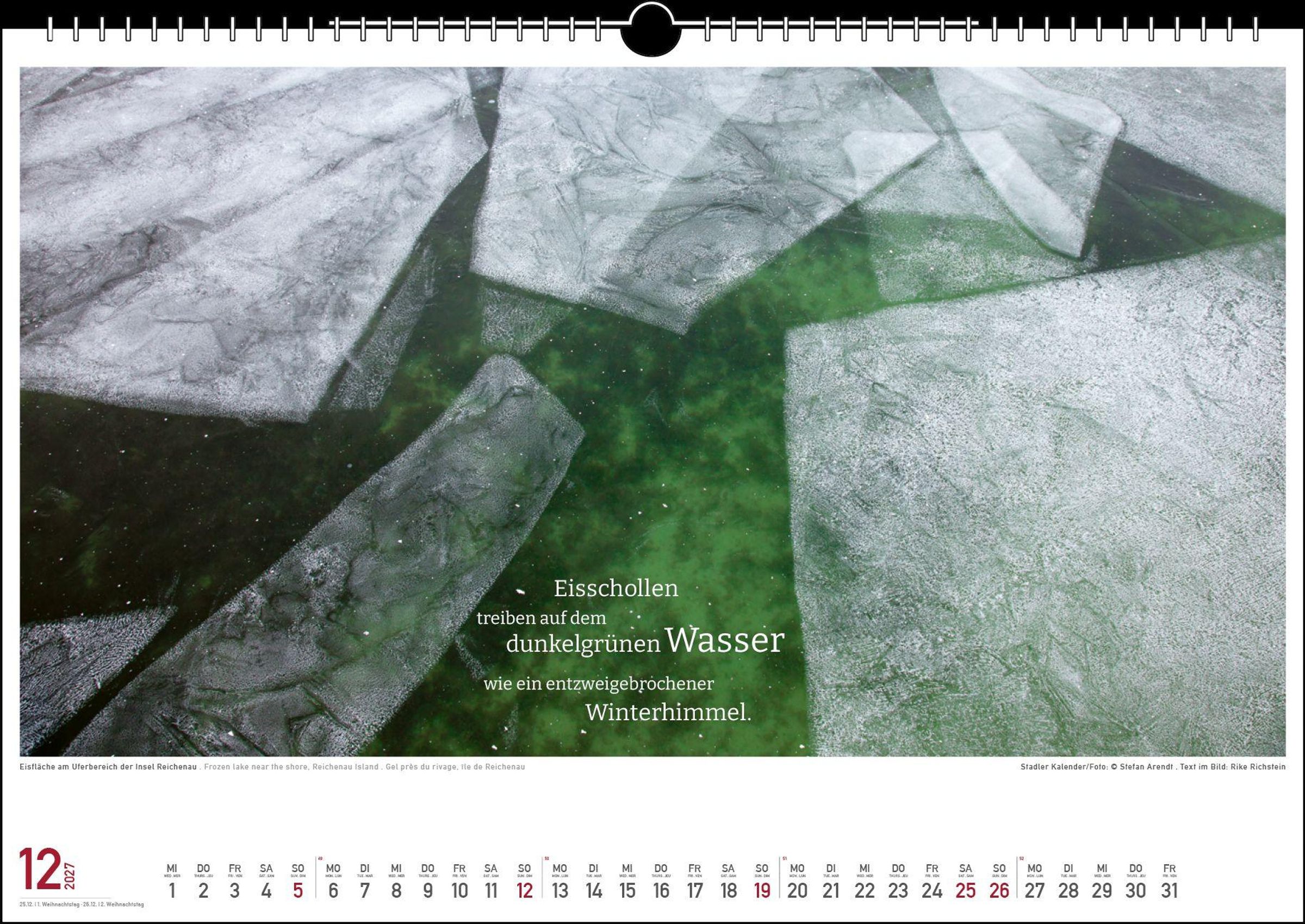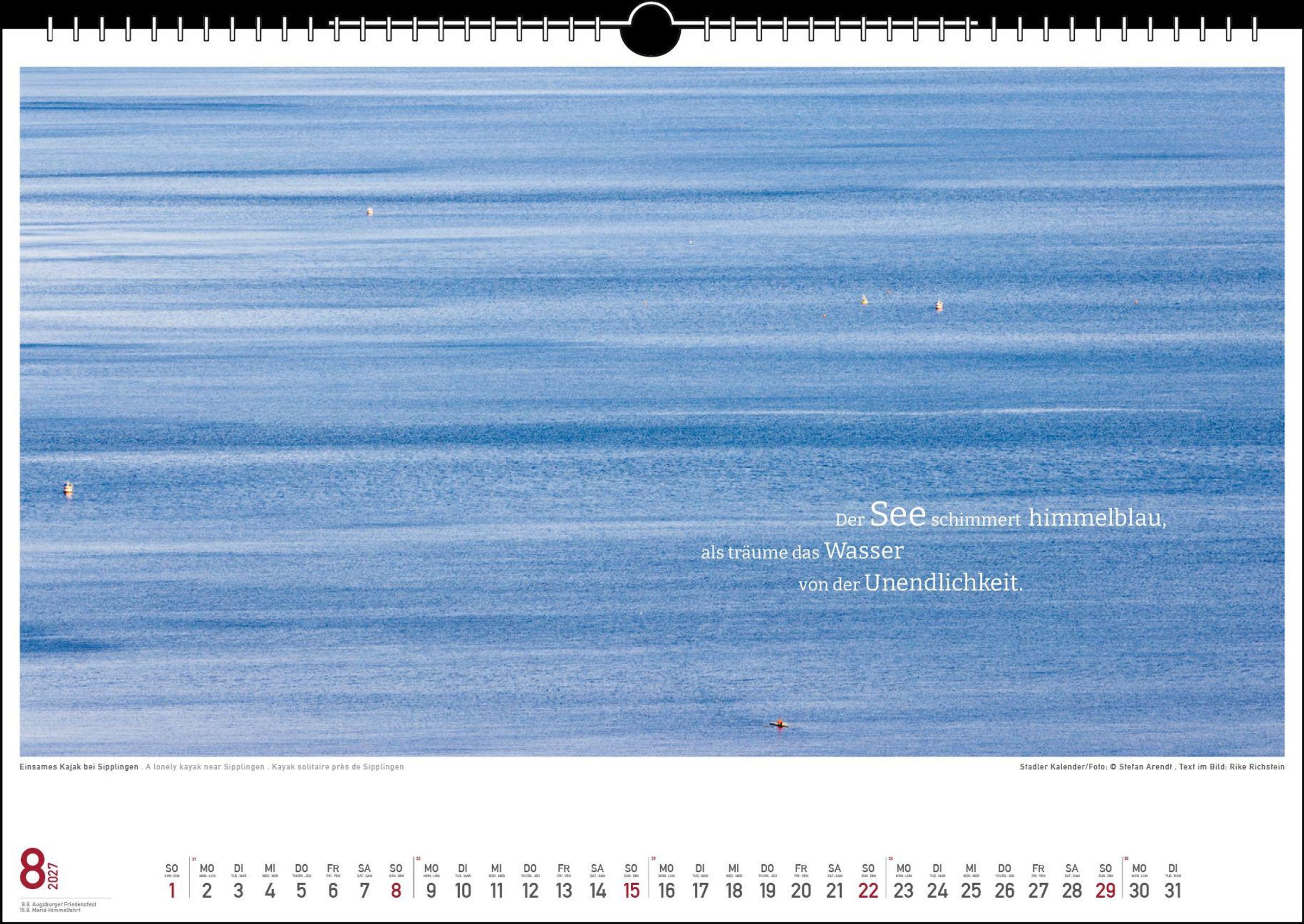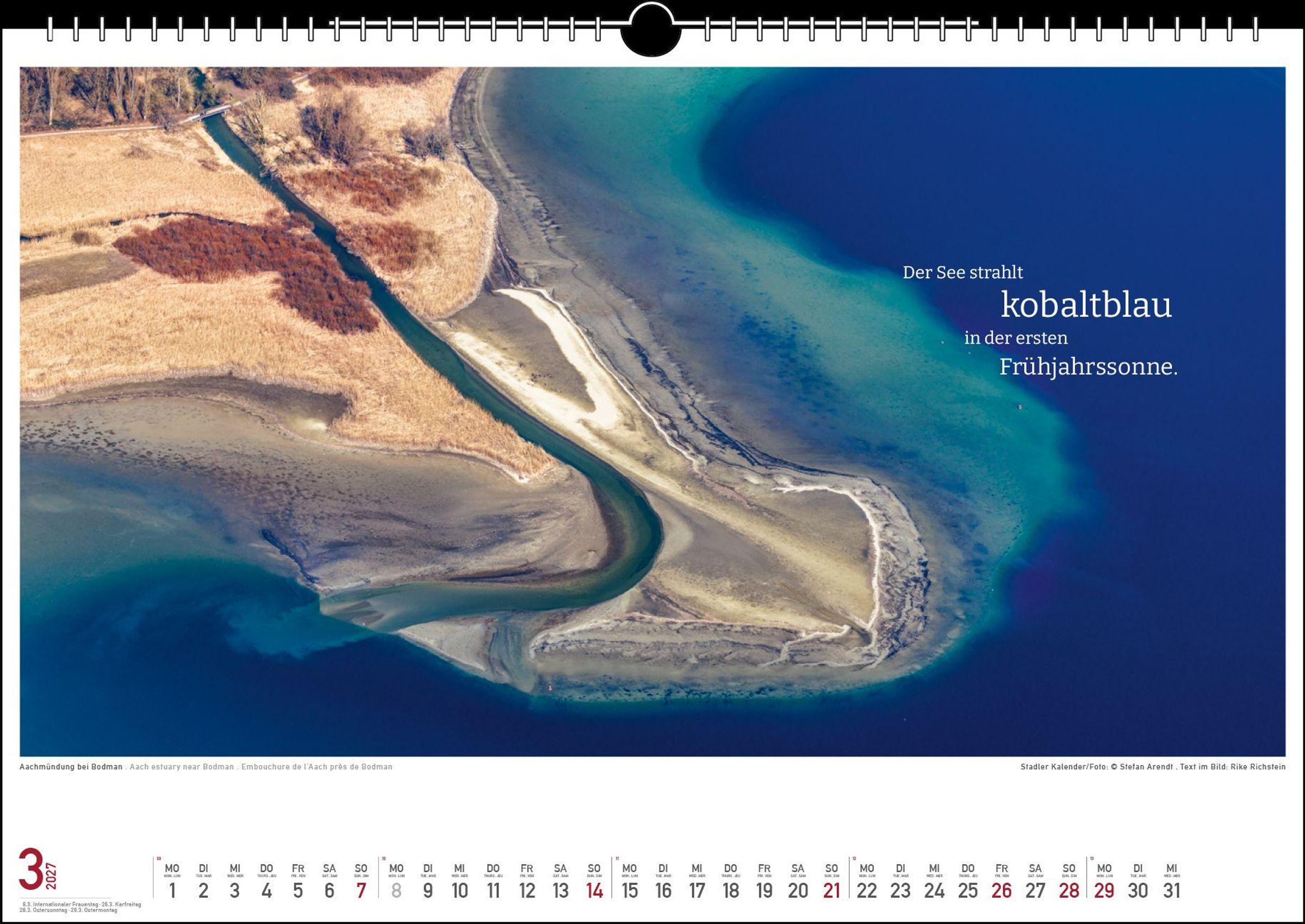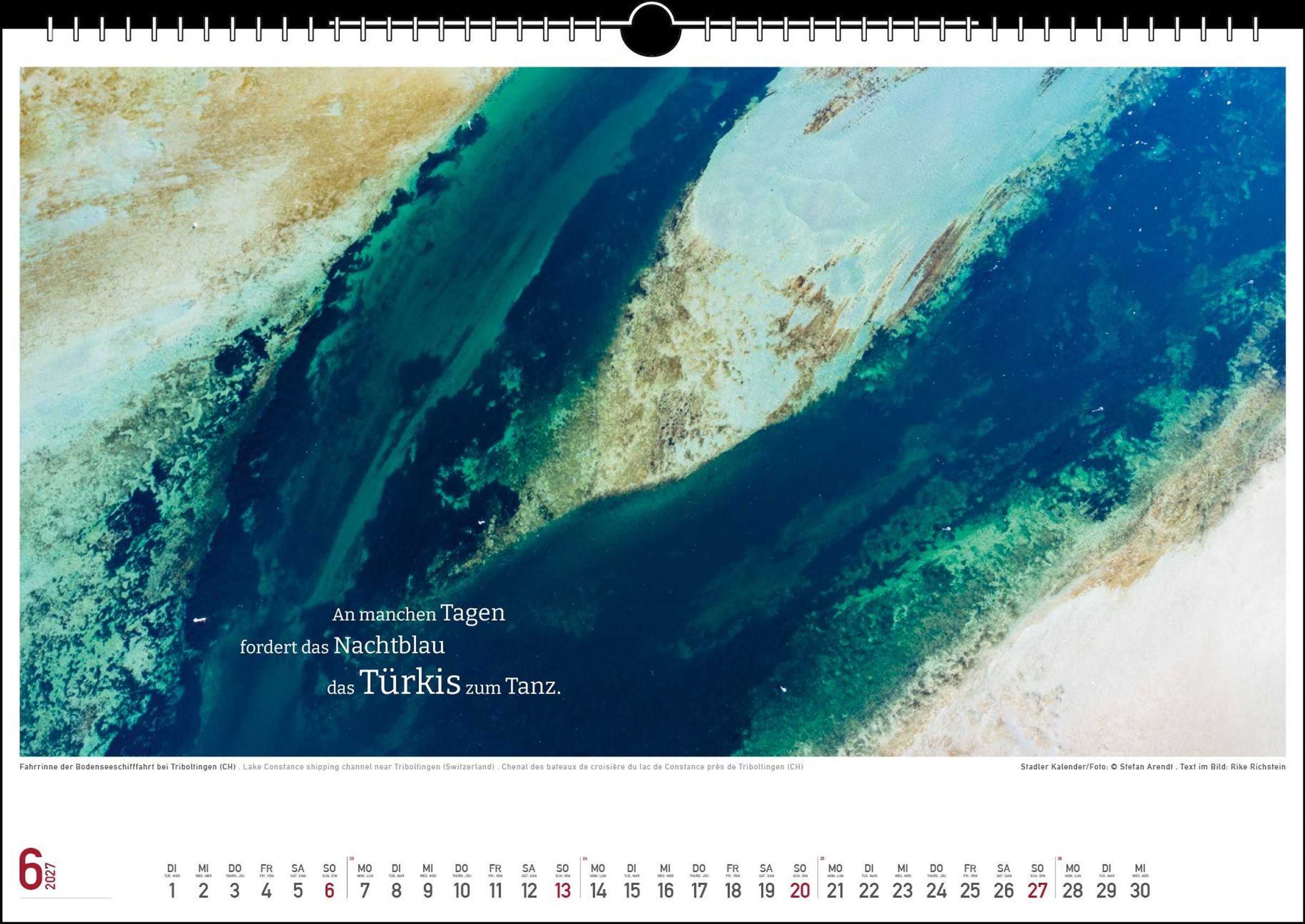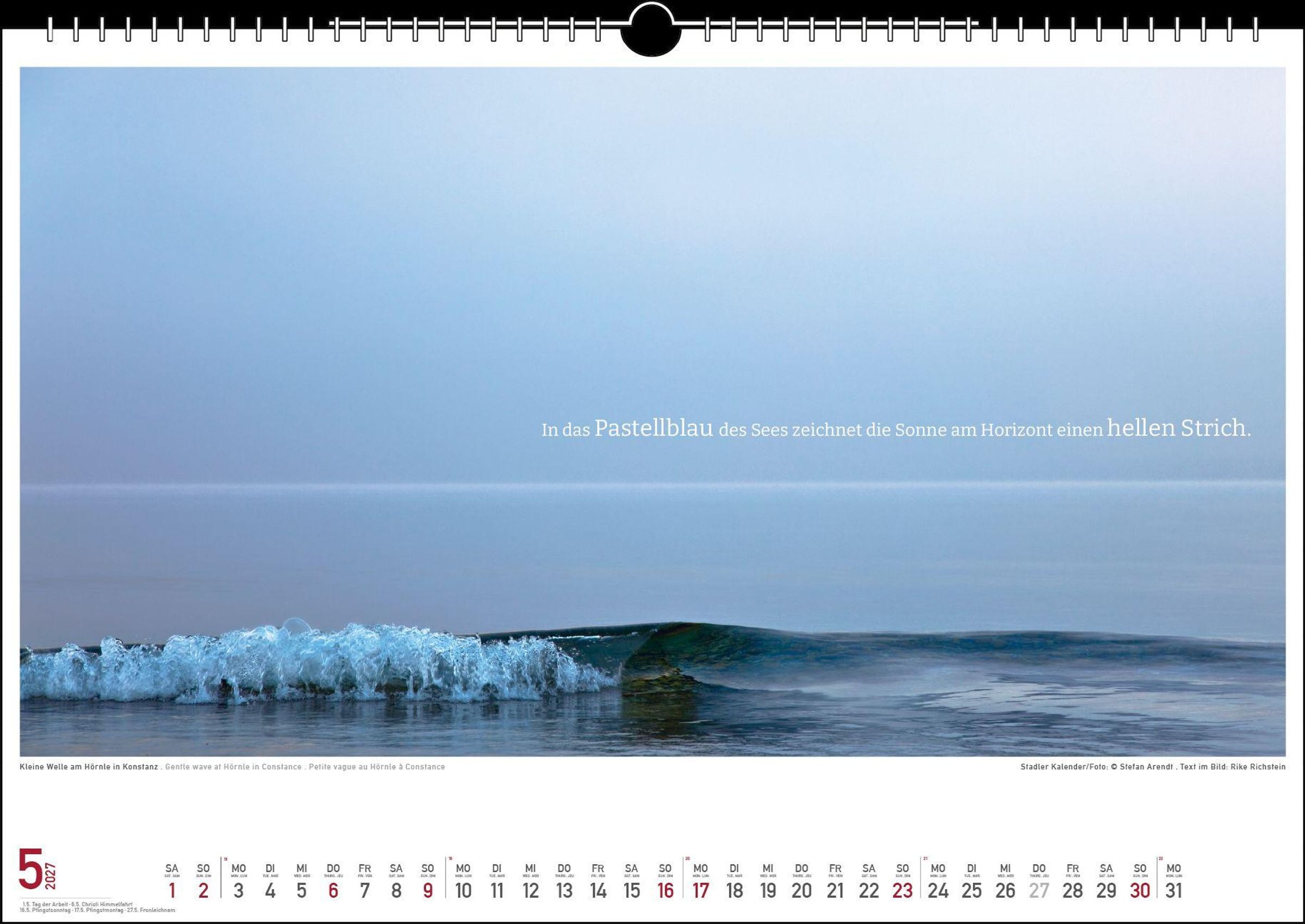 Als würde man einen Malkasten aufklappen, liegt der Bodensee in ständig wechselnden Farben vor uns. Die Nuancen und Stimmungen ändern sich jeden Tag. In ihrem preisgekrönten Roman "Die Farben des Sees" ist es Rike Richstein meisterhaft gelungen, die oft nur schwer in Worte zu fassenden Schattierungen bildhaft zu beschreiben. Was liegt also näher, als ihre Texte und die Bilder des Fotografen Stefan Arendt in einem unvergleichlichen Kalender für das Jahr 2026 zusammen zu führen. Ein Fest für die Augen - freuen Sie sich auf jeden einzelnen Monat des großformatigen Kalenders "Die Farben des Sees 2026".