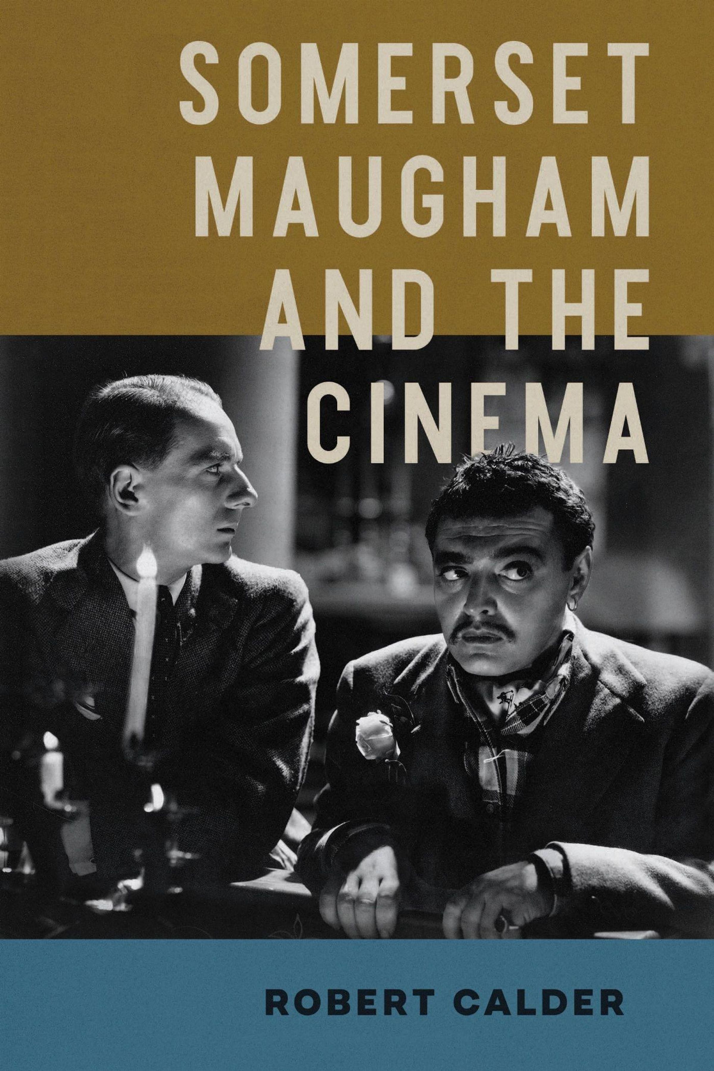 "Somerset Maugham and the Cinema" von Robert Calder. Zwei Männer in einem Filmset, schwarz-weiß, ernstes Gespräch., Buch
