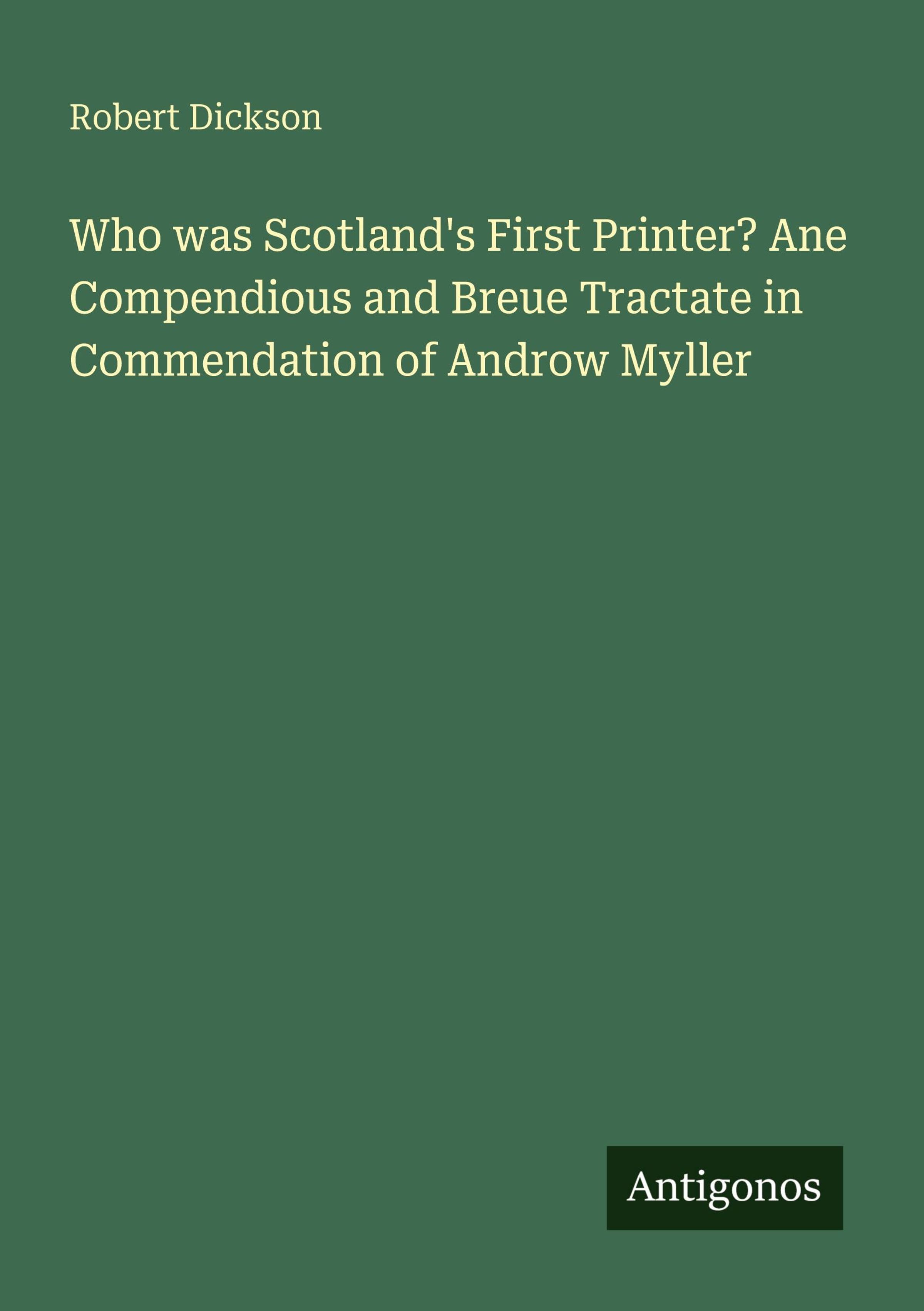 Robert Dickson: Who was Scotland's First Printer? Ane Compendious and Breue Tractate in Commendation of Androw..., Kartoniert / Broschiert