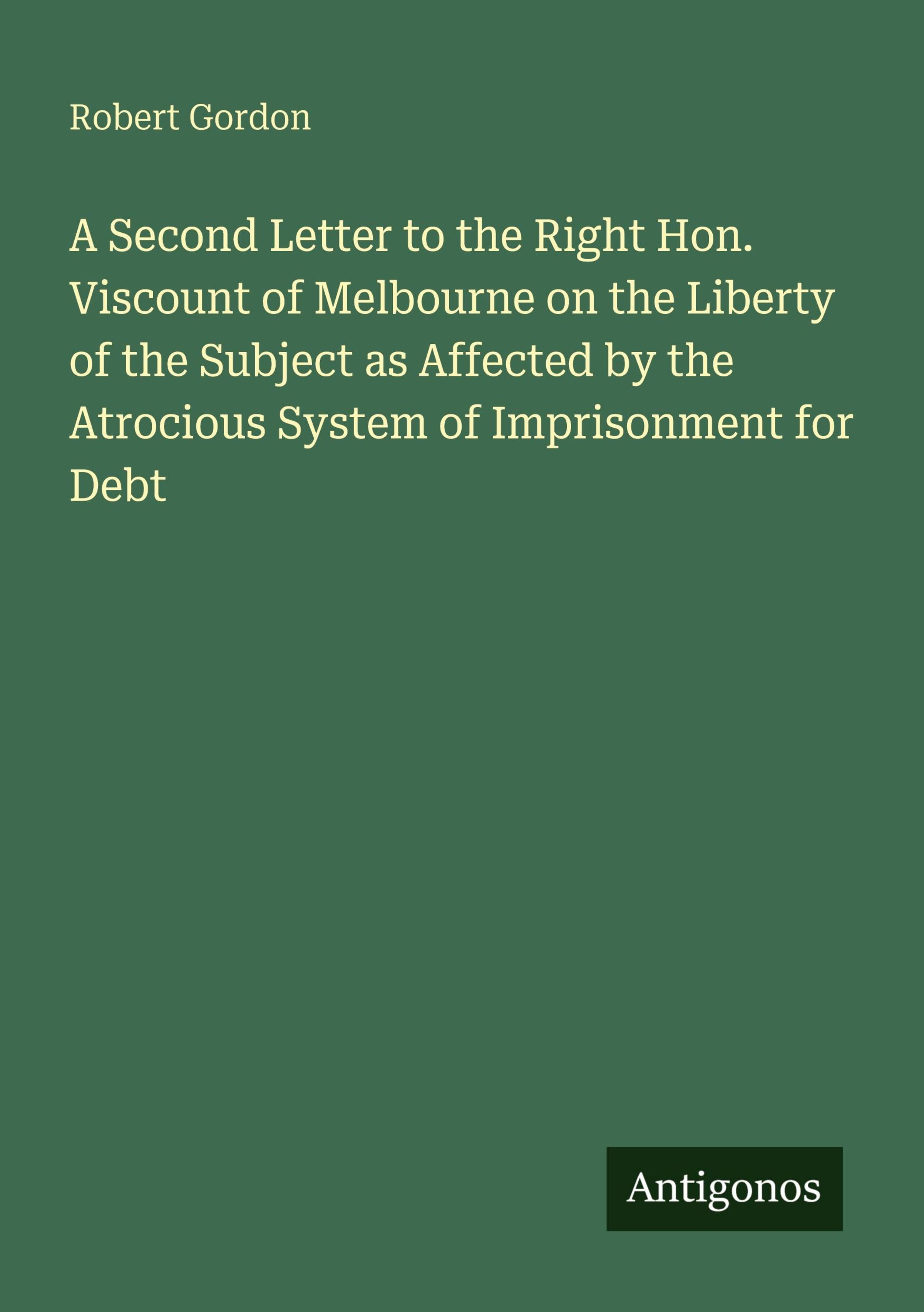 A Second Letter to the Right Hon. Viscount of Melbourne on the Liberty of the Subject as Affected by the Atrocious System of Imprisonment for Debt