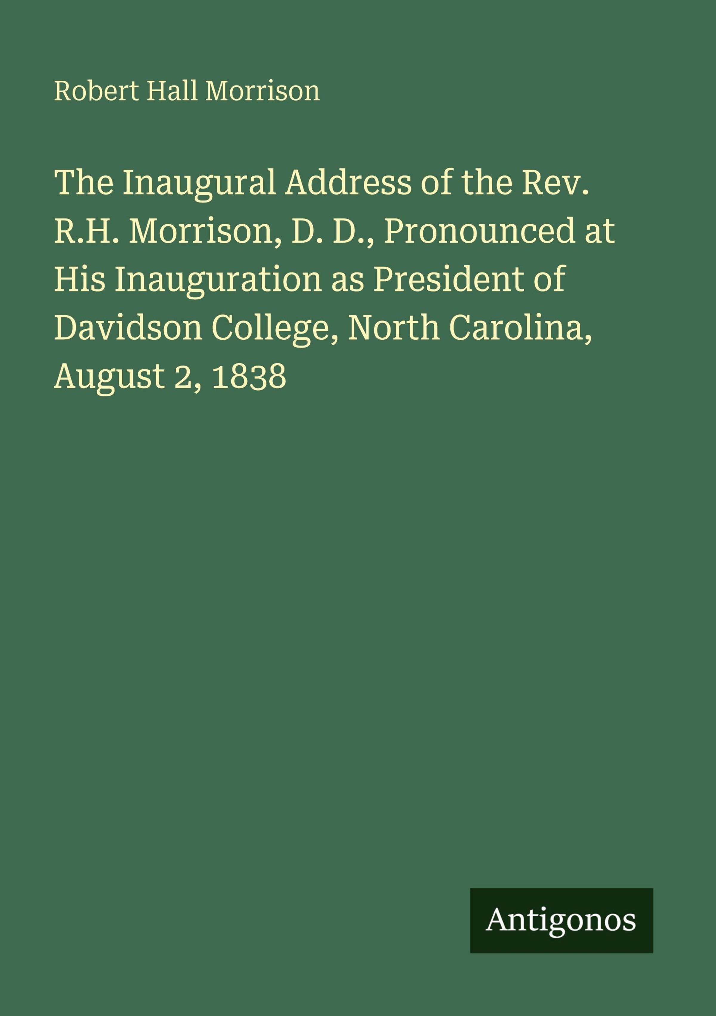 The Inaugural Address of the Rev. R.H. Morrison, D. D., Pronounced at His Inauguration as President of Davidson College, North Carolina, August 2, 1838