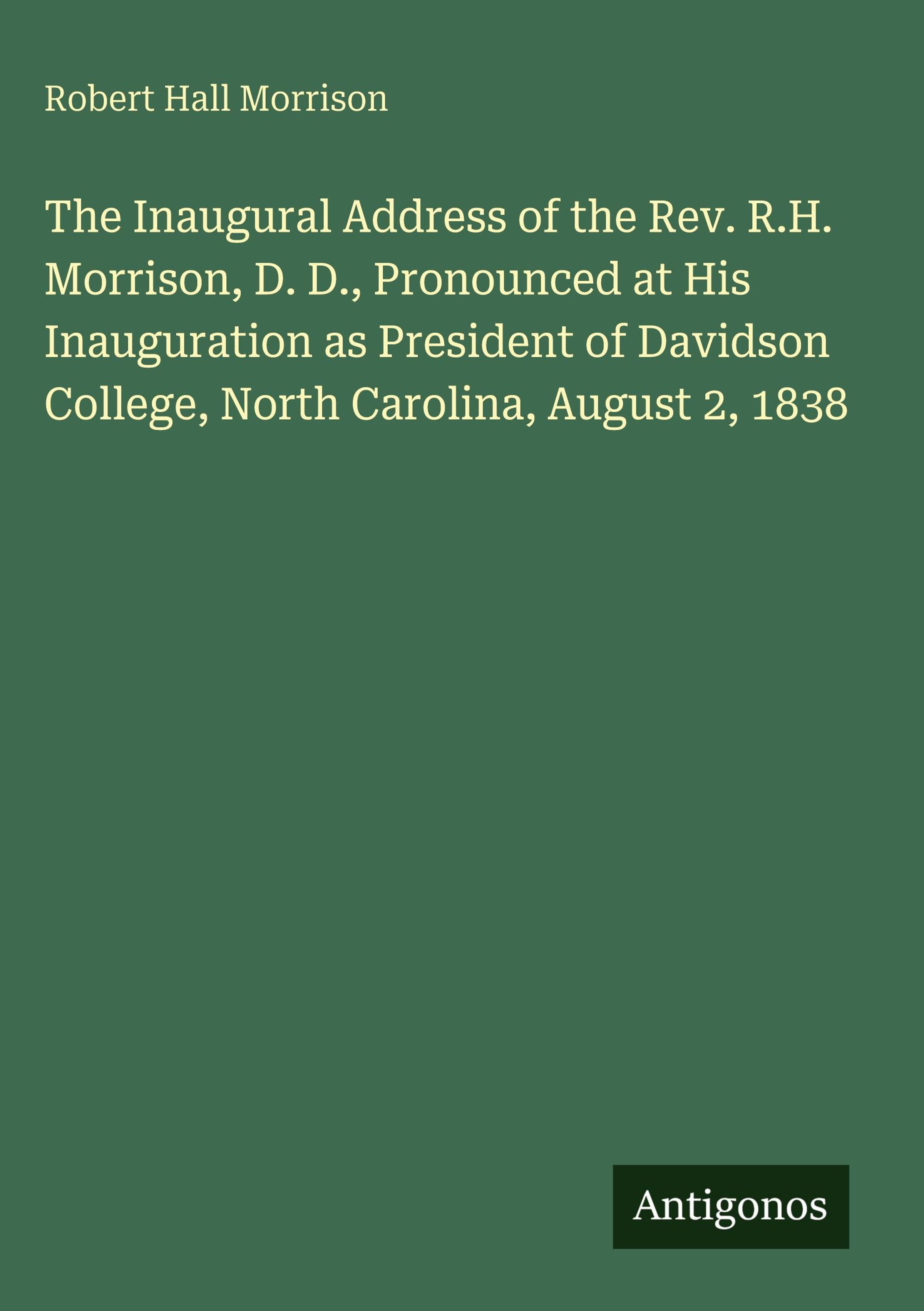 The Inaugural Address of the Rev. R.H. Morrison, D. D., Pronounced at His Inauguration as President of Davidson College, North Carolina, August 2, 1838
