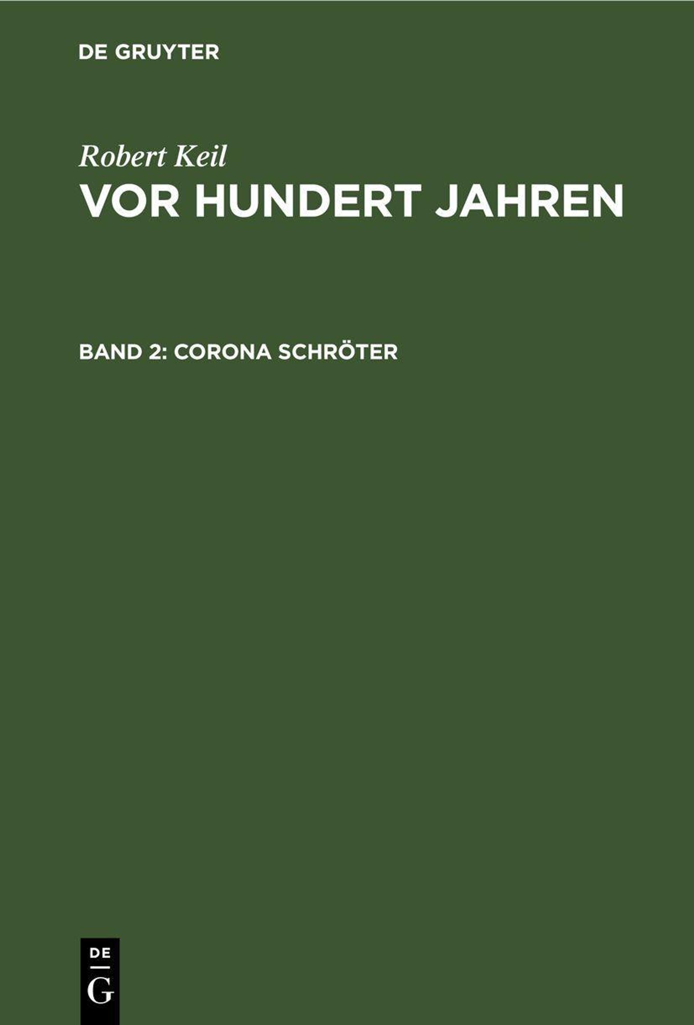 Frontmatter -- Inhalt des zweiten Bandes. -- Corona Schröter Eine Lebensskizze, mit Beiträgen zur Geschichte der Genie-Periode. -- Vorbemerkungen. -- I. Familie. - Kindheit -- II. Leipzig 1763. Das große Concert -- III. Gertrud Elisabeth Schmehling und Corona Schröter. -- IV. Reichardt. Körner. -- V. Herzogin Anna Amalie von Weimar und ihr Theater. -- VI. Wiedersehen Corona's und Goethe's. -- VII. Der Winter 1776-77. -- VIII. Das Jahr 1778. -- IX. Das Jahr 1779. -- X. 1780. Oratorien. -- XI. 1781. Epiphanias. -- XII. 1782. Maskenzug "die weiblichen Tugenden." -- XIII. 1783-1787. Ende des Liebhaber-Theaters. - l'acadämie de musique. Malerei und Lieder - (Kompositionen. - Verkehr mit Schiller. -- XIV. Goethe's Rückkehr aus Italien. -- XV. Ilmenau. Besuch in Weimar.