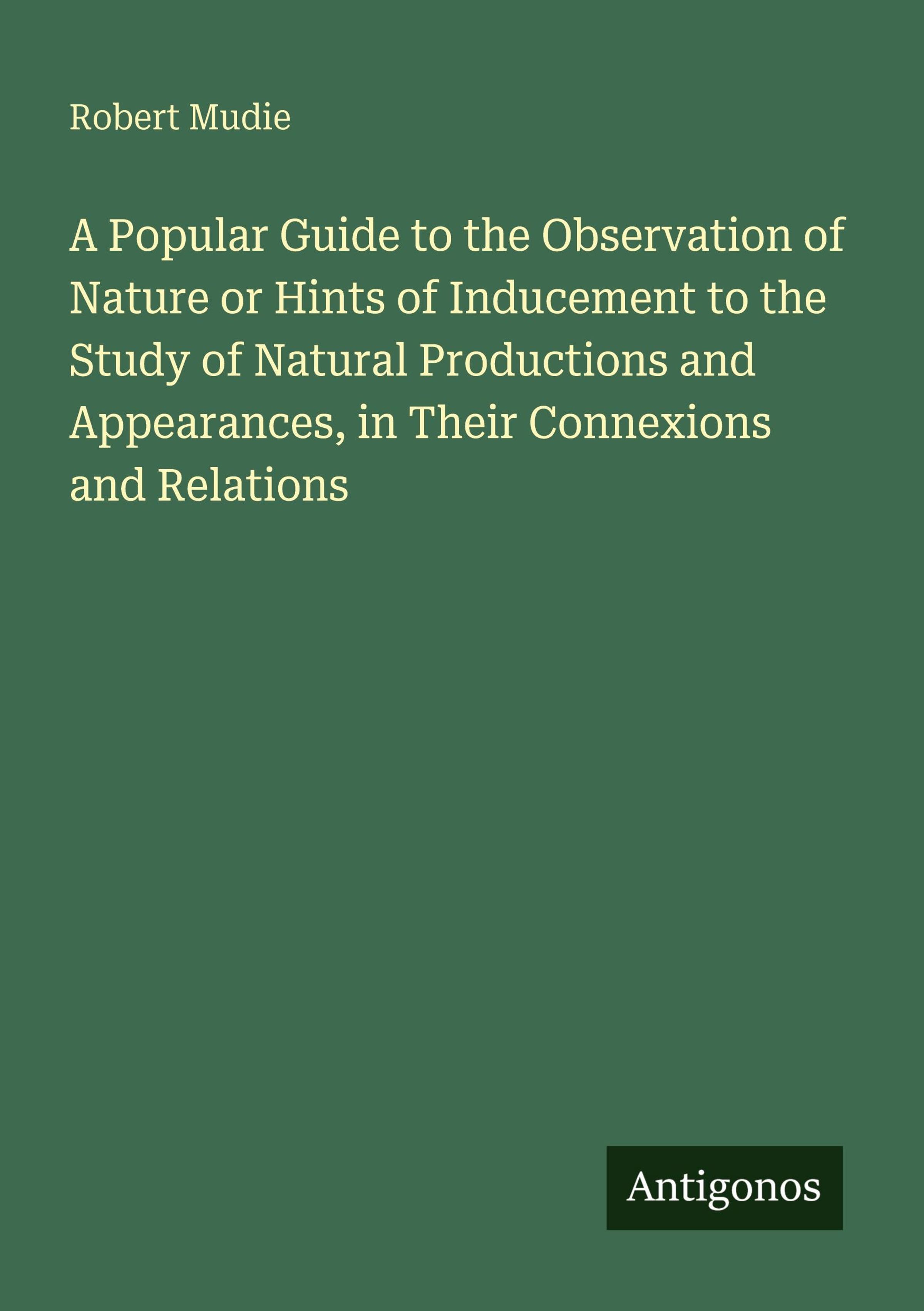 A Popular Guide to the Observation of Nature or Hints of Inducement to the Study of Natural Productions and Appearances, in Their Connexions and Relations