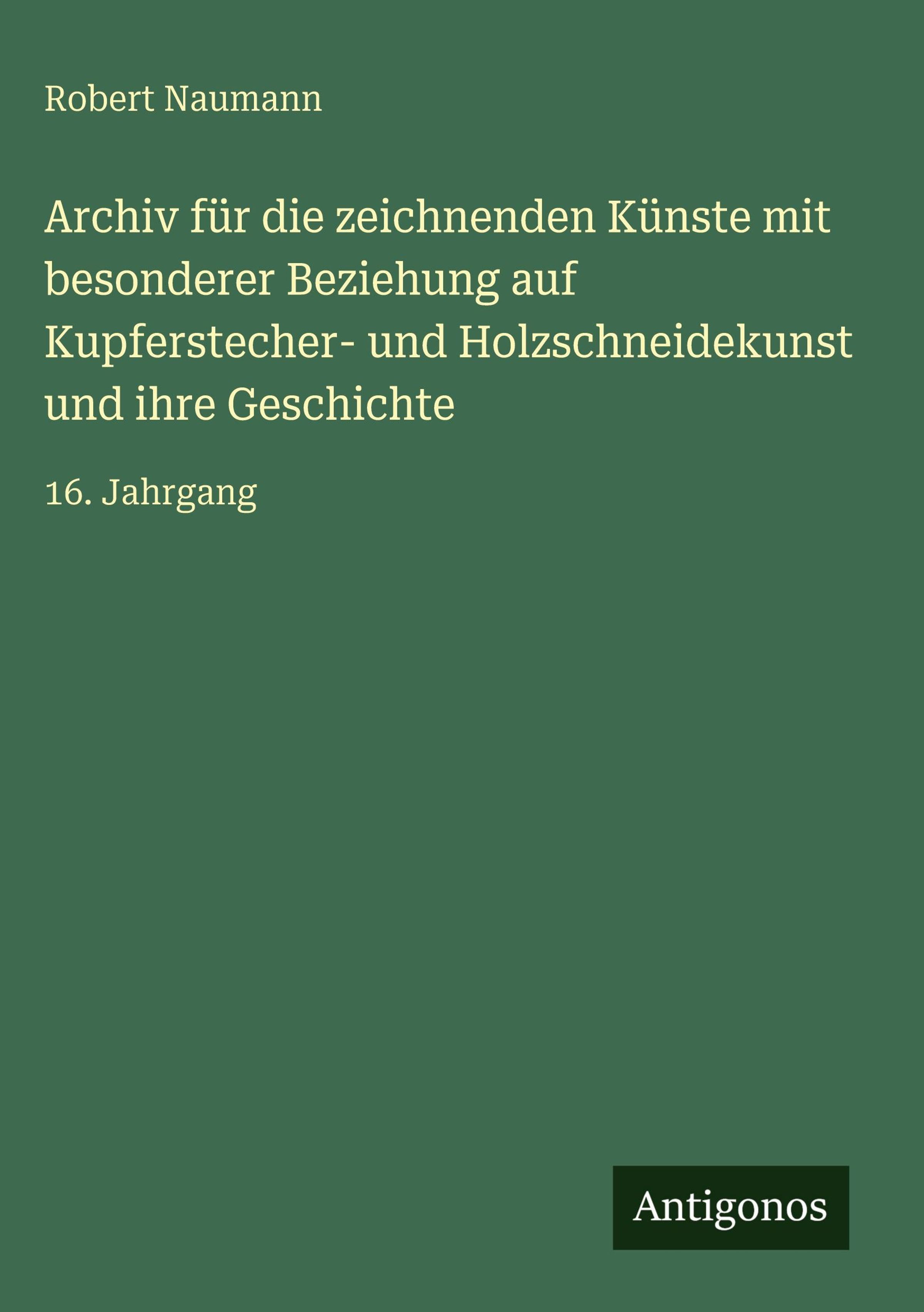 Archiv für die zeichnenden Künste mit besonderer Beziehung auf Kupferstecher- und Holzschneidekunst und ihre Geschichte