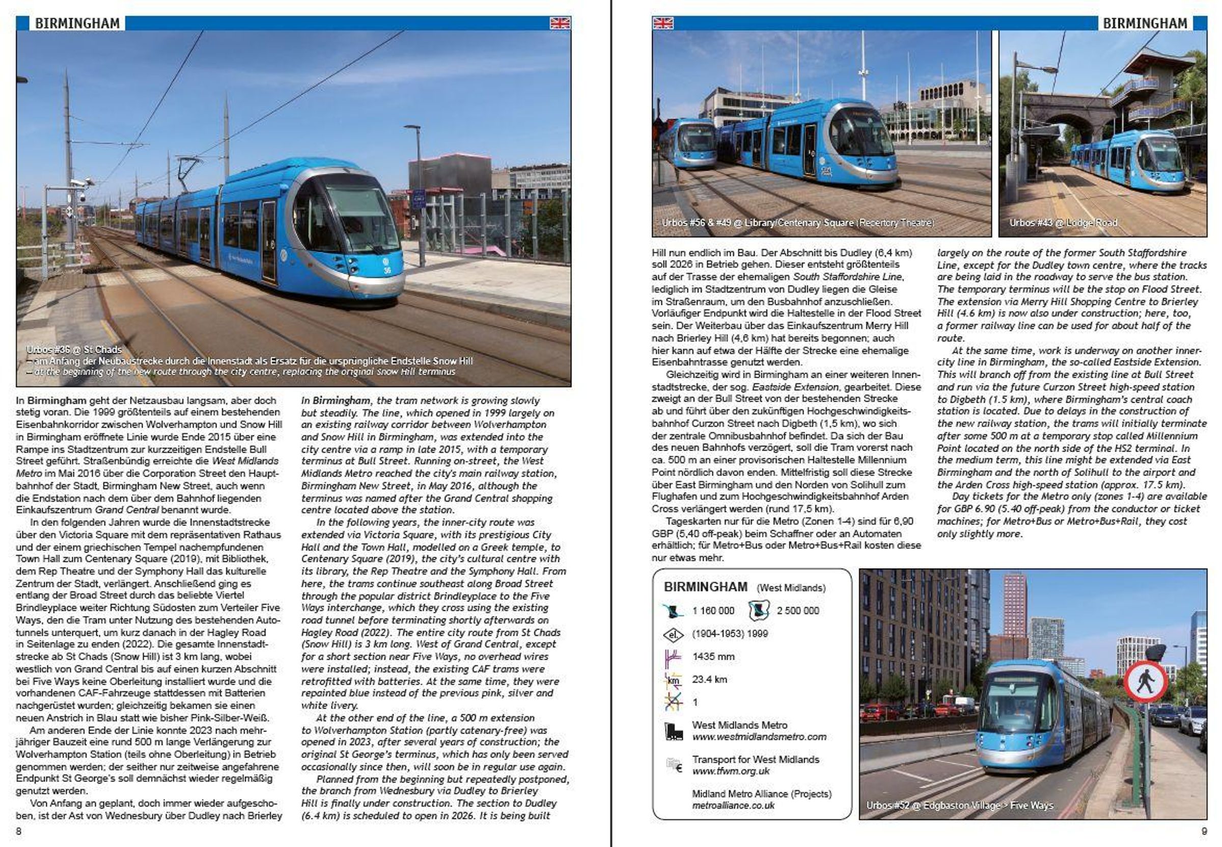 Unser zweisprachiger Tram Atlas Westeuropa umfasst alle Trambetriebe in Großbritannien, Irland, Belgien (inkl. der neuen Straßenbahn in Lüttich), Luxemburg und den Niederlanden. Mit dabei sind auch die U-Bahnen der Region, ausgenommen die London Underground, die wir bereits in mehreren Büchern separat betrachtet haben. Das Buch ist wie immer illustriert mit detaillierten aktualisierten Netzplänen sowie unzähligen Farbfotos fast aller derzeit verkehrenden Fahrzeuge. // Our bilingual Tram Atlas Western Europe covers the tram systems in Britain, Ireland, Belgium (including the new tram in Liège), Luxembourg and the Netherlands, as well as the metro systems in this region (except for the London Underground which we have already dealt with in various other books). As always, the book is illustrated with detailed updated network maps as well as hundreds of colour photographs of almost all the current rolling stock.